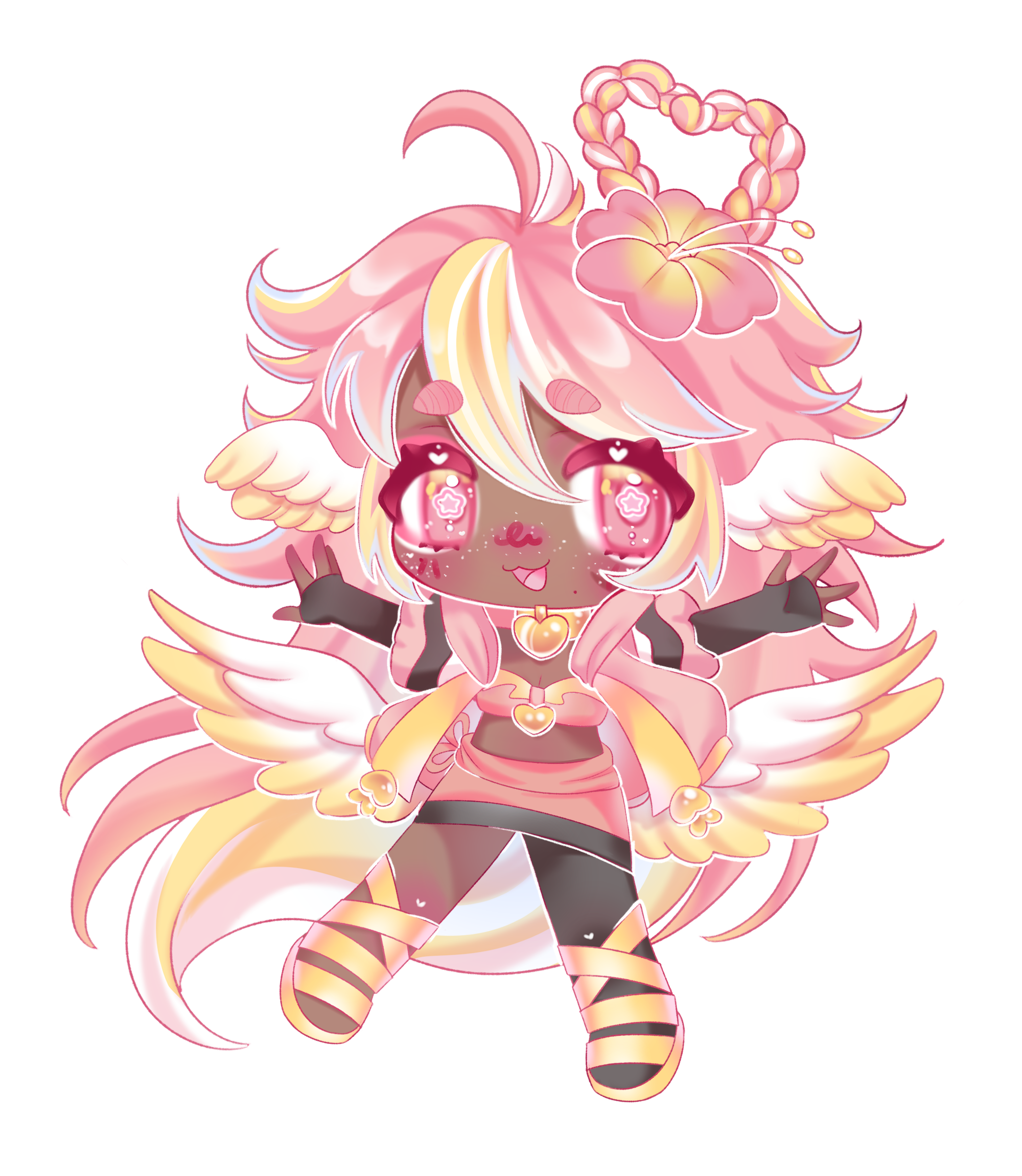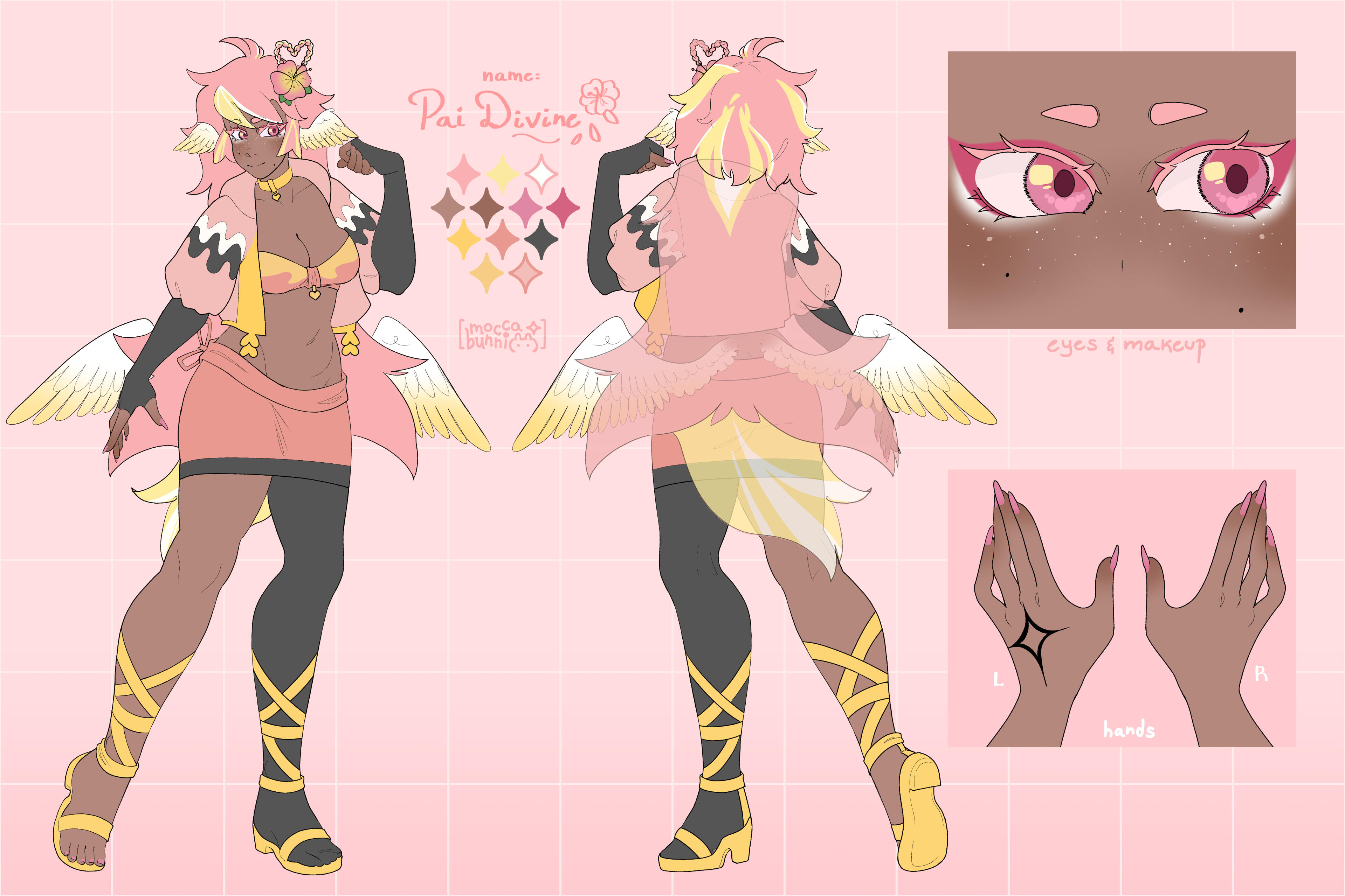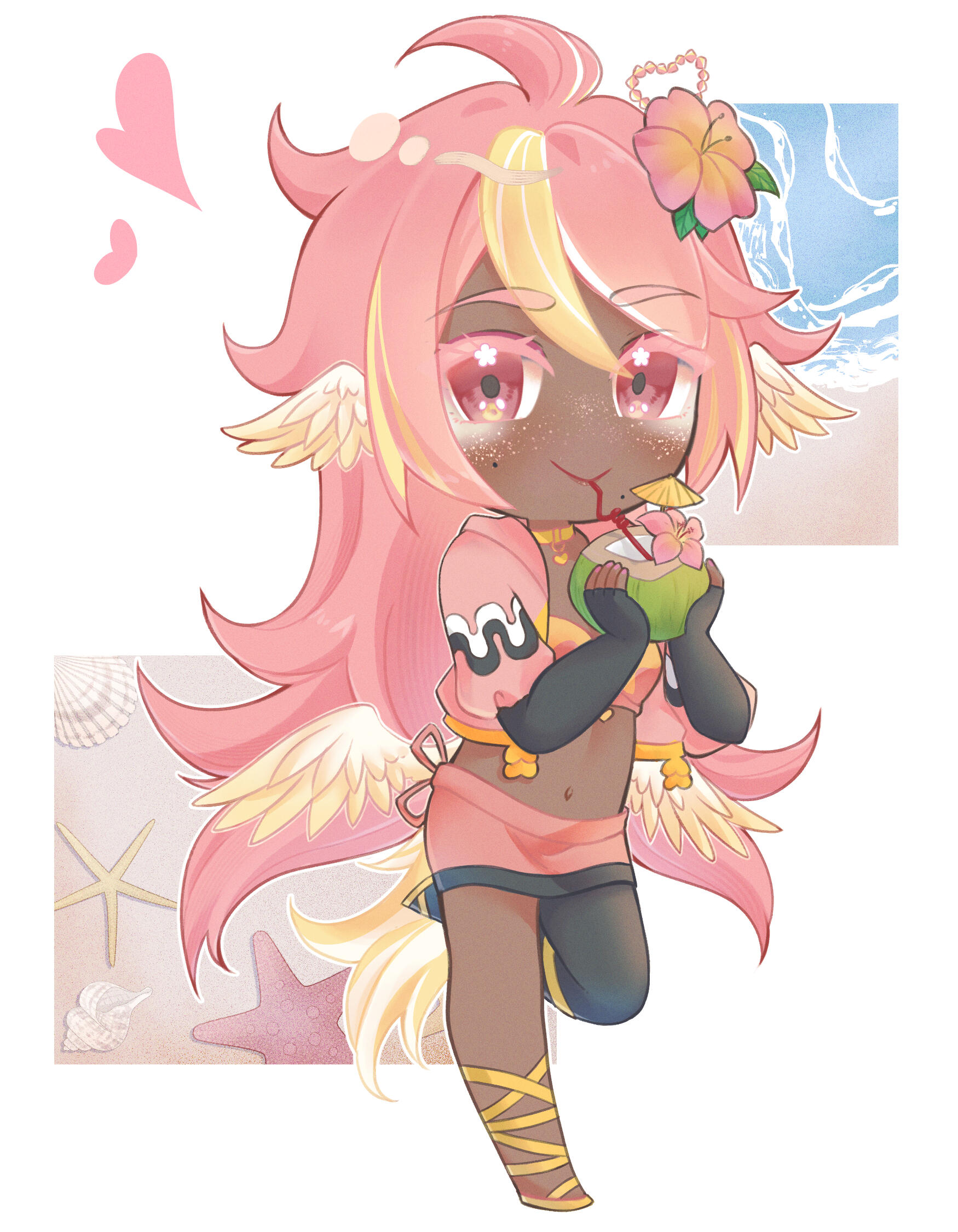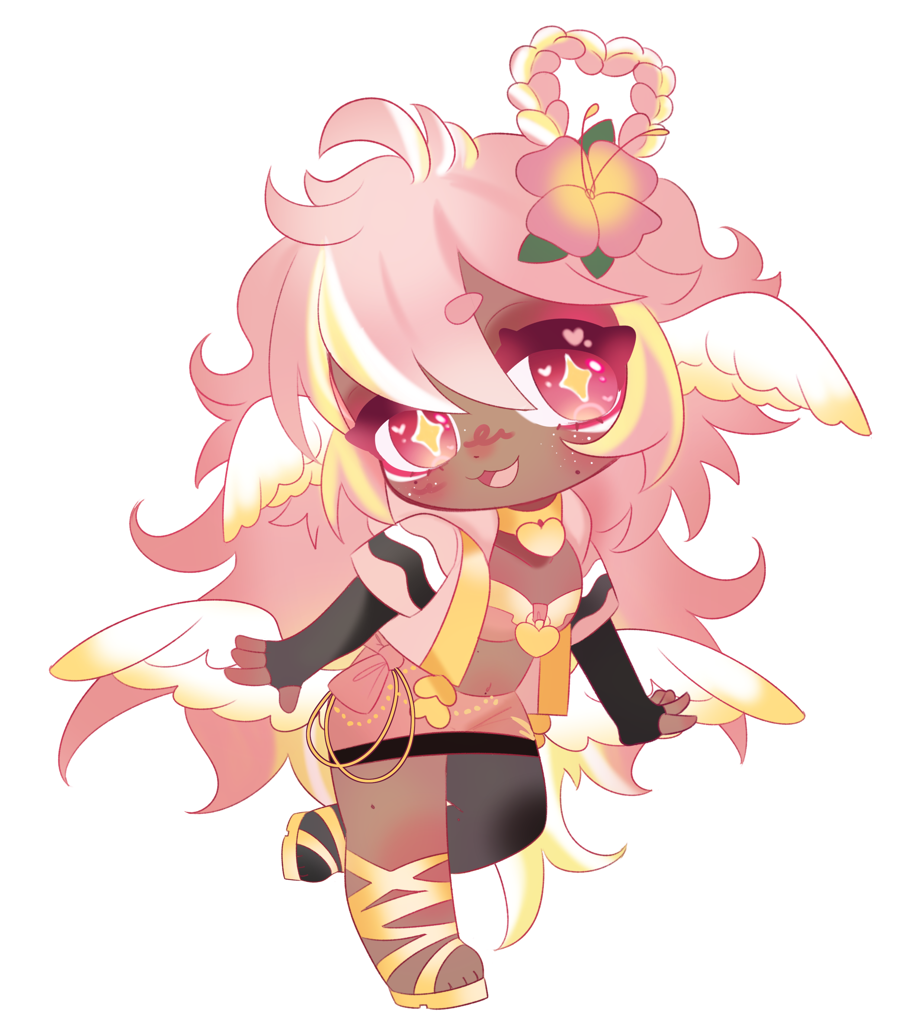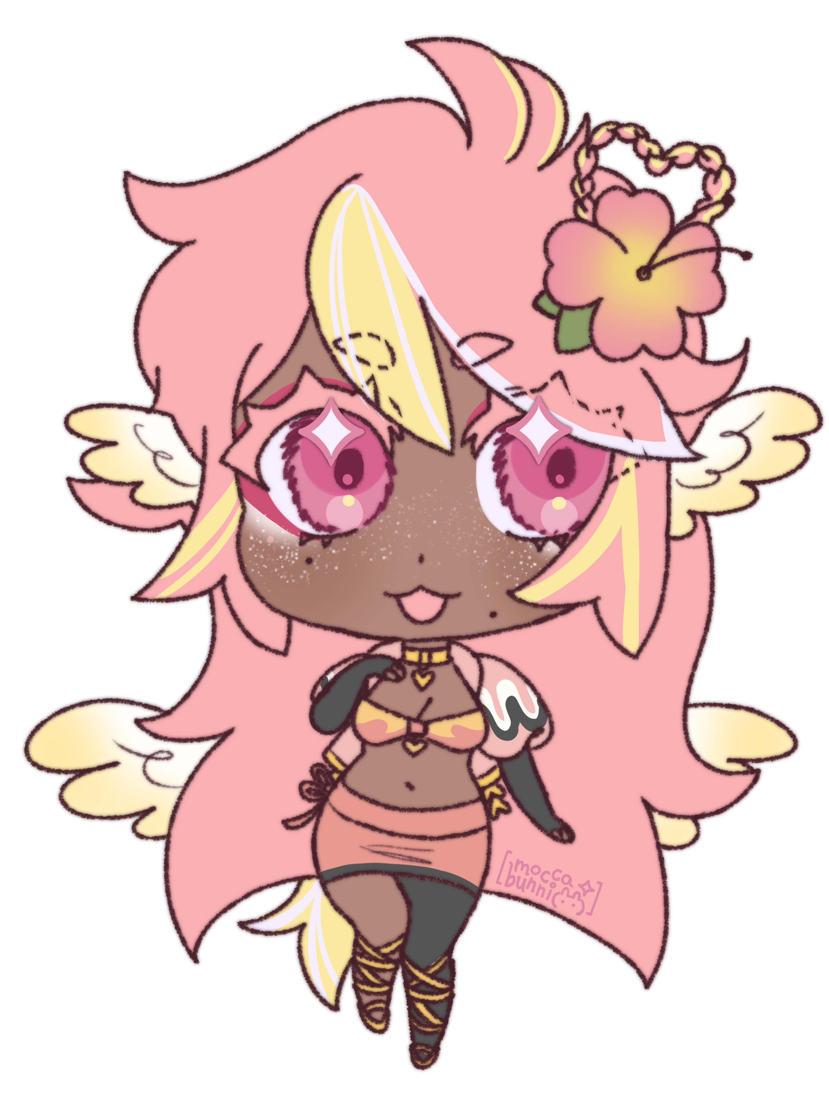 Pai is an angel from a country called Haven, she was born and raised in a small beach town by the border named Paradise. When a war broke out in her country, Pai’s town was one the first affected by the chaos and destruction caused by the neighboring country, Infinite. After losing part of her family and home she decided to join her people’s military with her sister and was bestowed a Stellar. A Stellar is a special symbol of power, which is marked as a star symbol on her hand; these Stellar’s also power special towers of protection that fell during the war called Scepters. She went on to contribute much to the cause but lost her remaining loved ones in the process. With the Scepter near her home being restored, she returned to her town and started the Cocostop as a way to bring hope and happiness; she now spends her time enjoying life to the fullest.Pai will never forget how terrifying her past was, she cherishes every moment of everyday life and faces each morning with a positive attitude. She is compassionate and kind, looking to bring a smile to each person’s face.