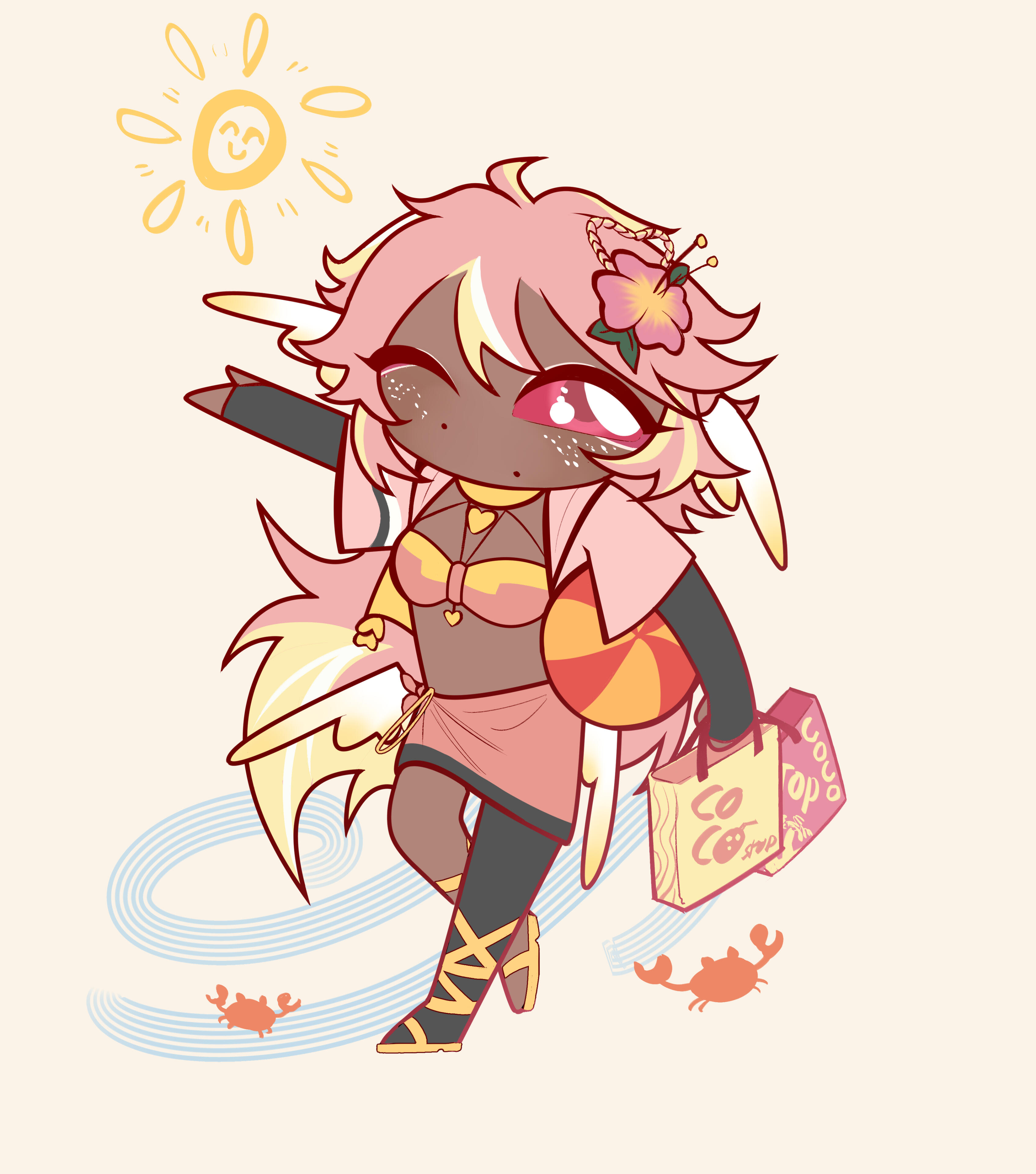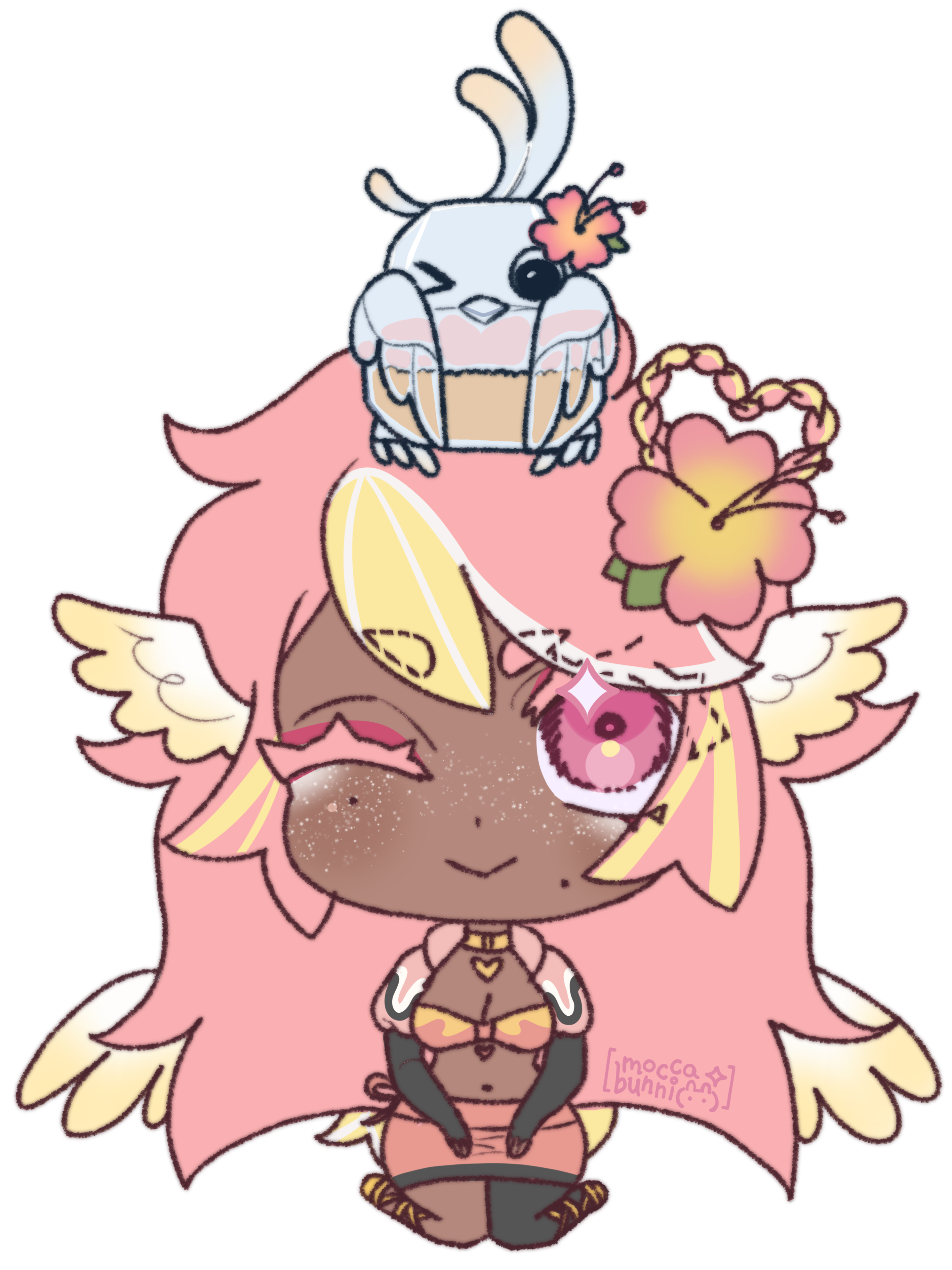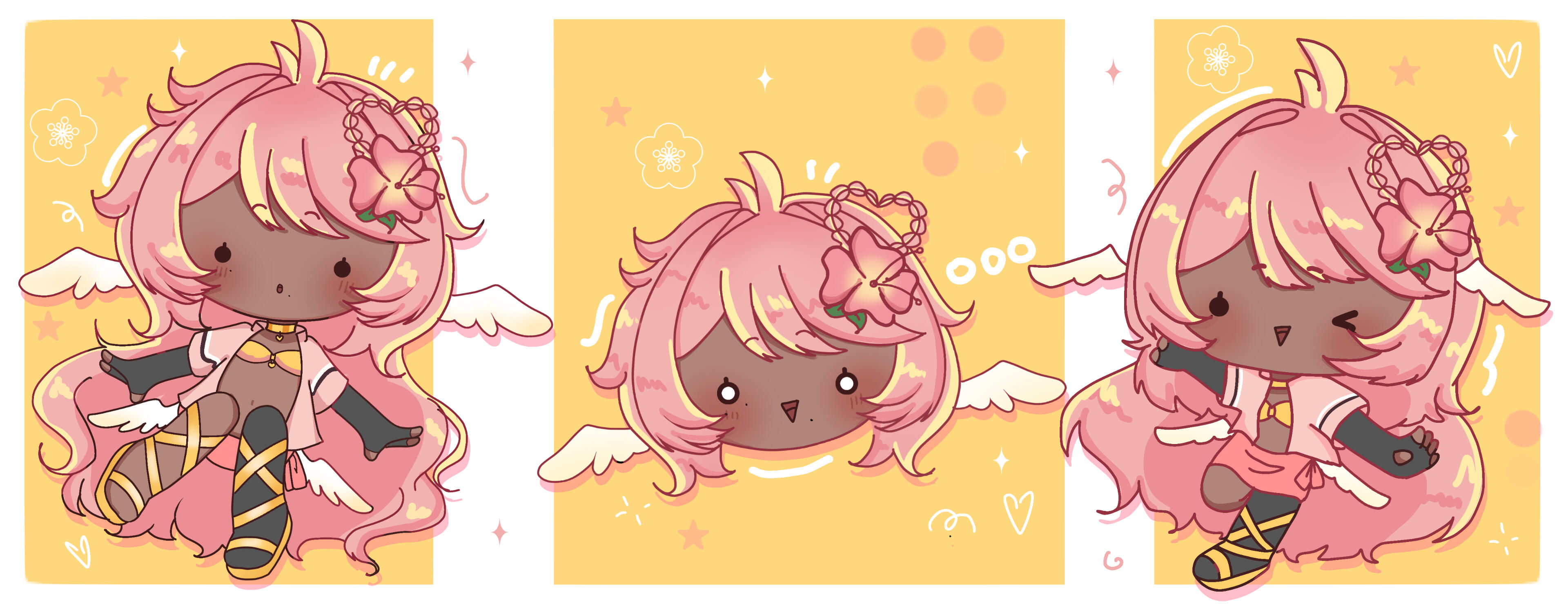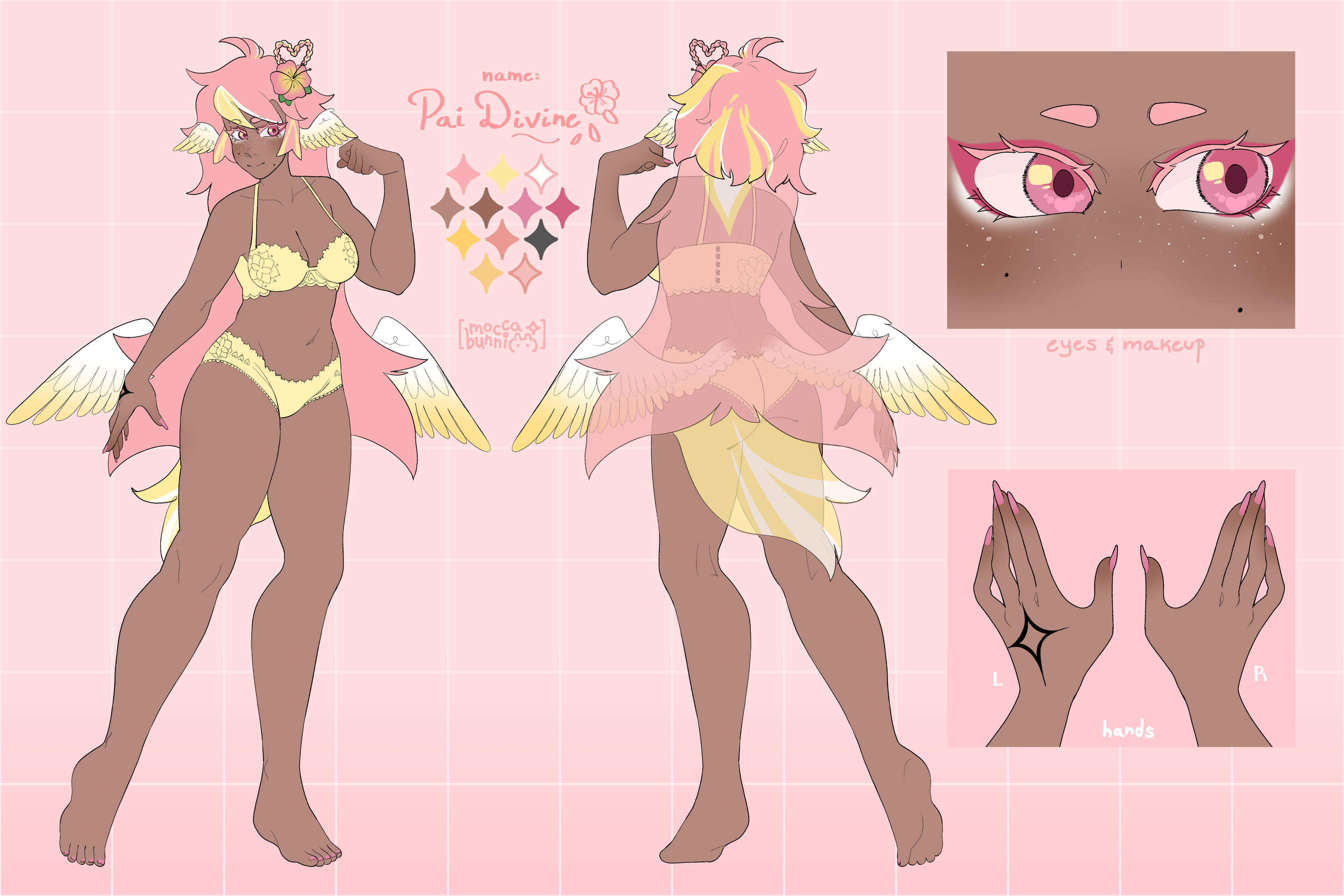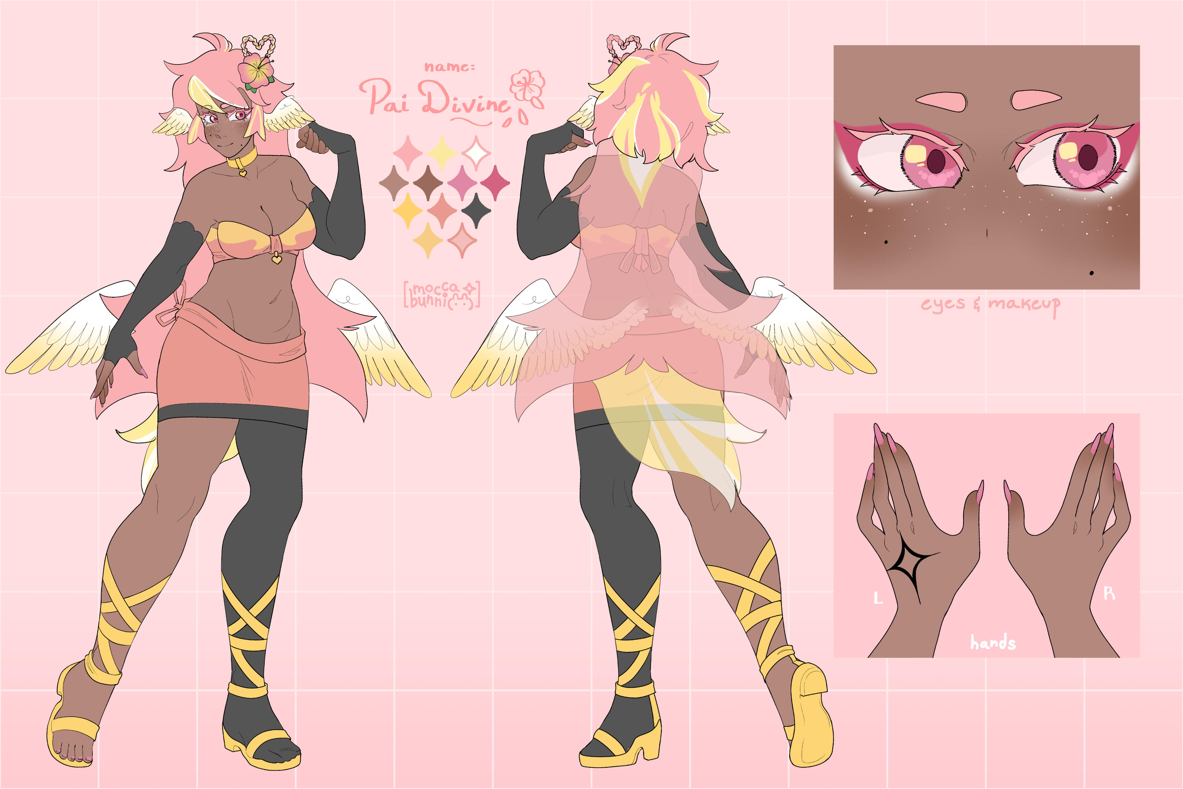 Pai is an angel from a country called Haven, she was born and raised in a small beach town by the border named Paradise. When a war broke out in her country, Pai’s town was one the first affected by the chaos and destruction caused by the neighboring country, Infinite. After losing part of her family and home she decided to join her people’s military with her sister and was bestowed a Stellar. A Stellar is a special symbol of power, which is marked as a star symbol on her hand; these Stellar’s also power special towers of protection that fell during the war called Scepters. She went on to contribute much to the cause but lost her remaining loved ones in the process. With the Scepter near her home being restored, she returned to her town and started the Cocostop as a way to bring hope and happiness; she now spends her time enjoying life to the fullest.Pai will never forget how terrifying her past was, she cherishes every moment of everyday life and faces each morning with a positive attitude. She is compassionate and kind, looking to bring a smile to each person’s face.