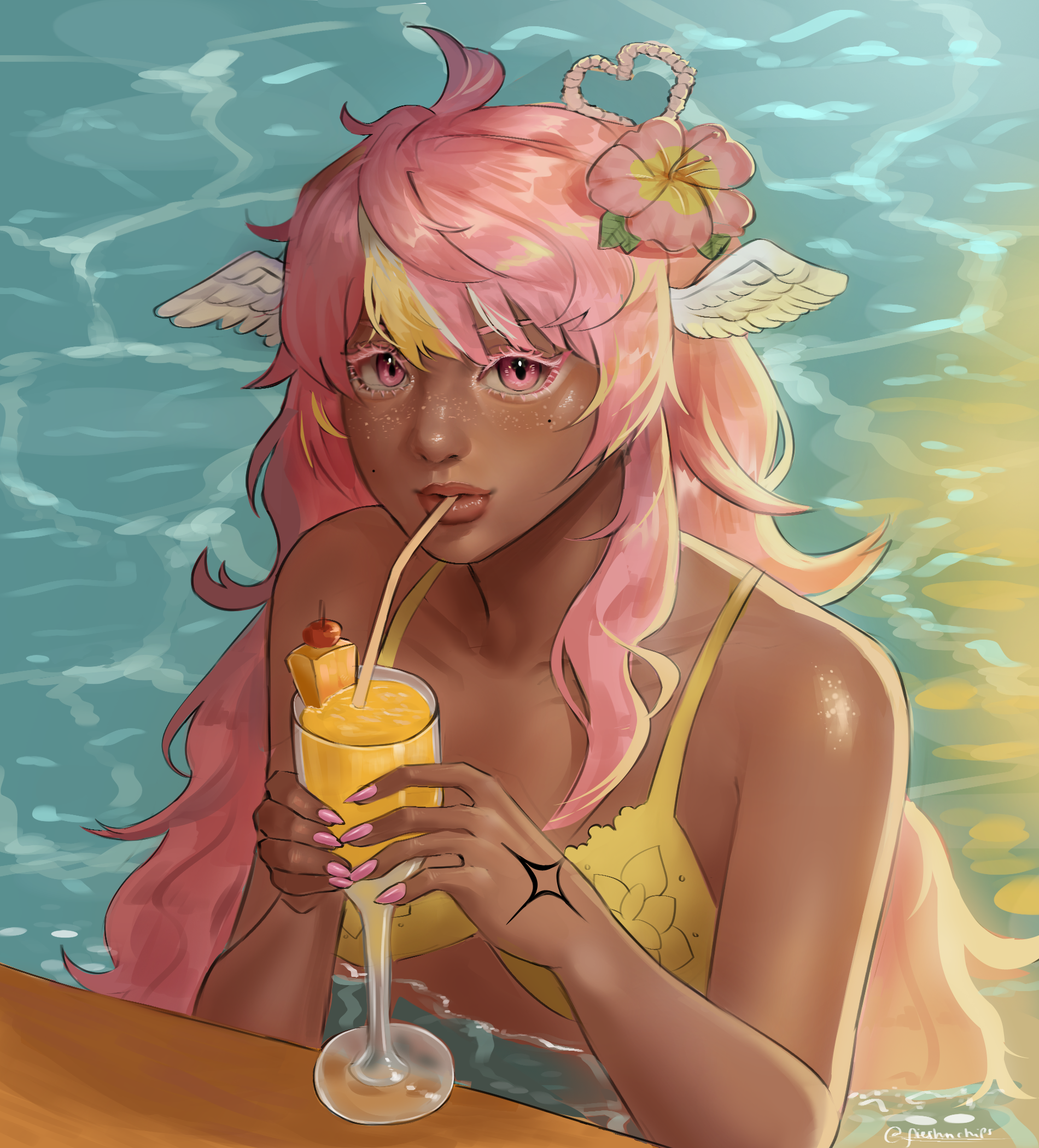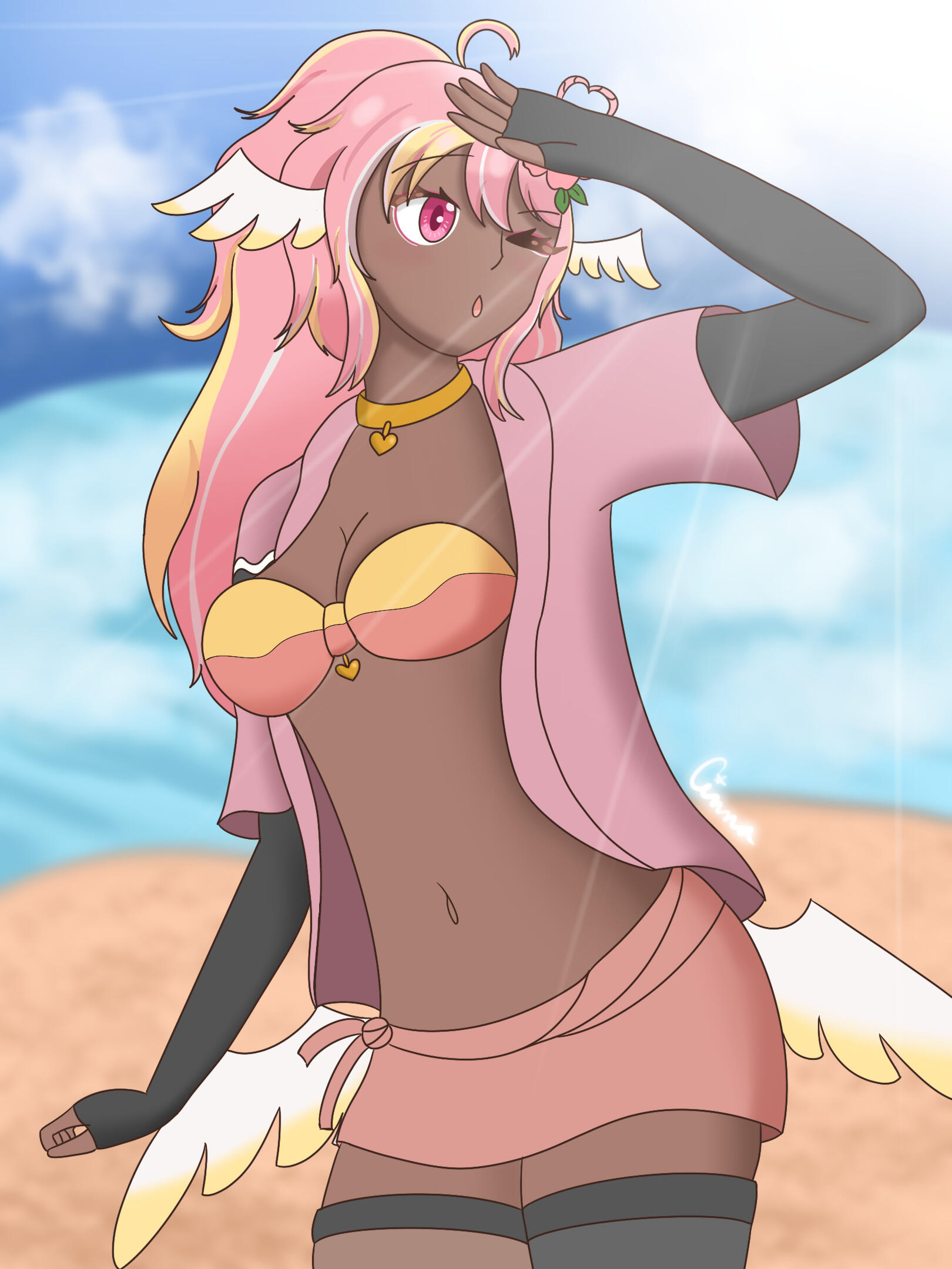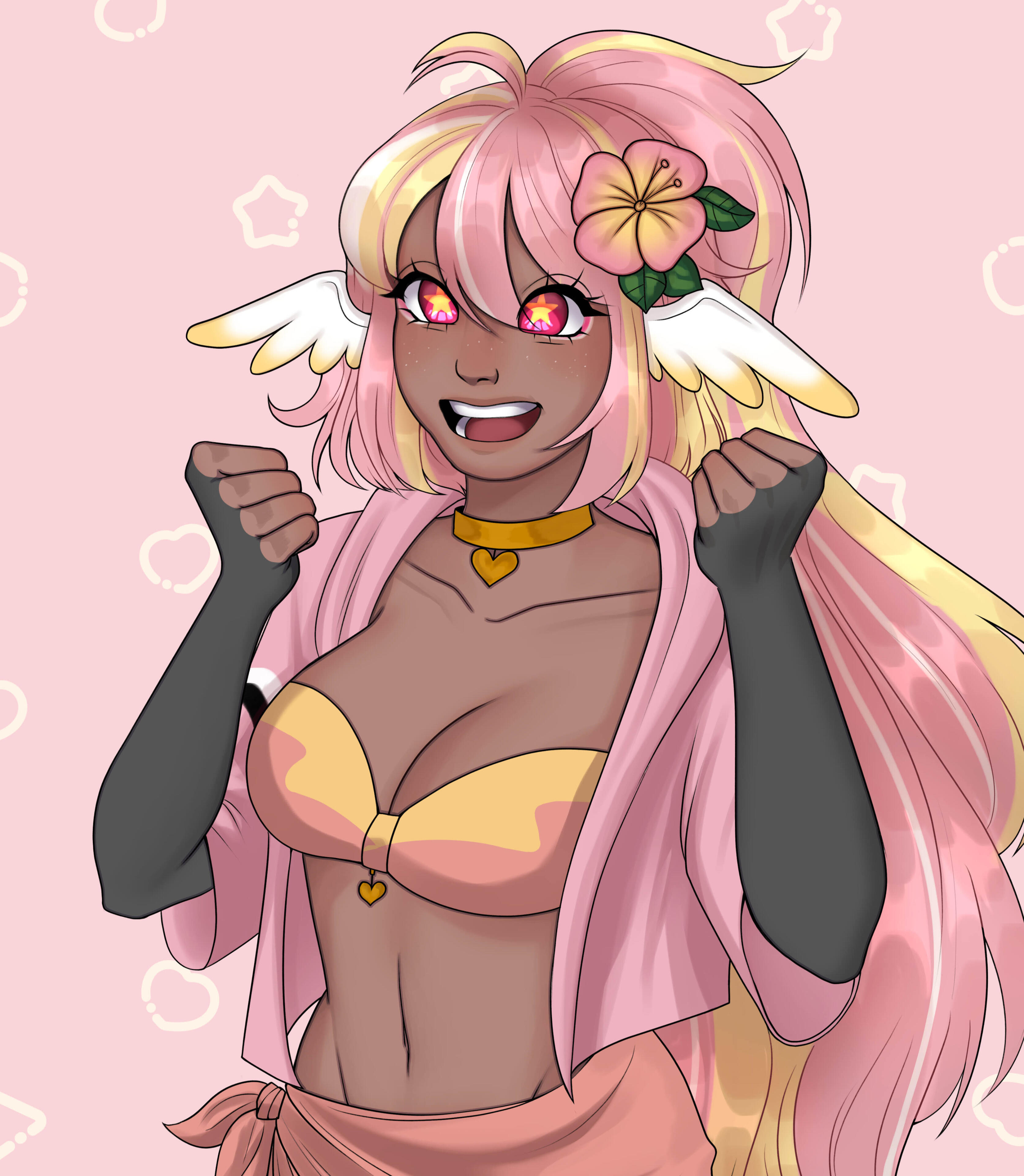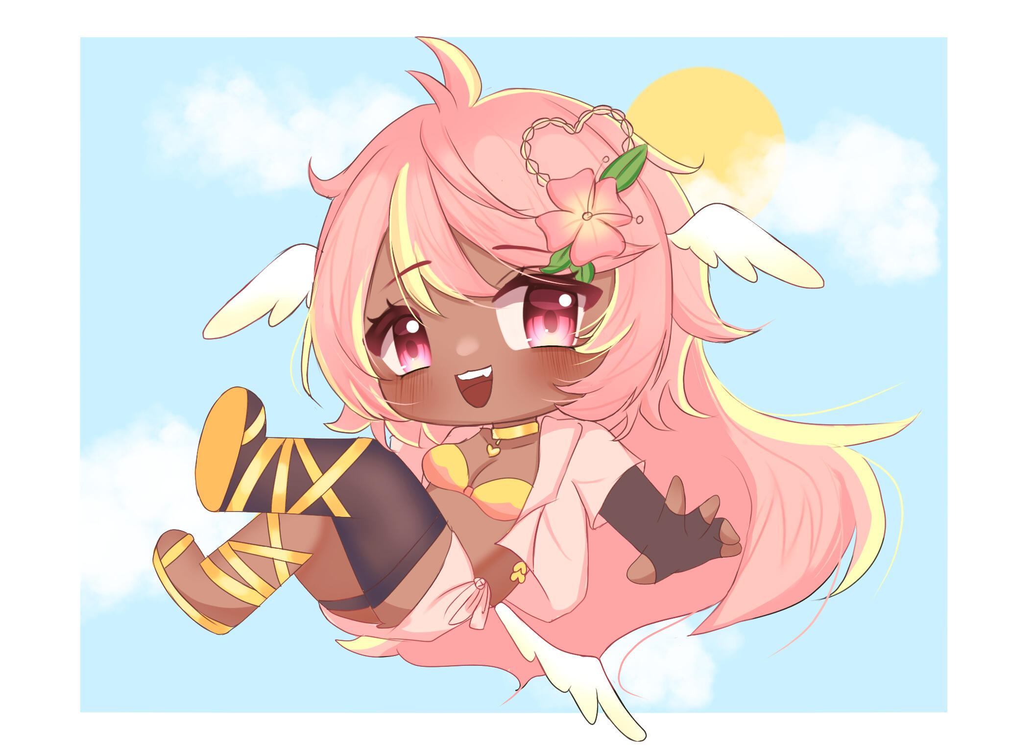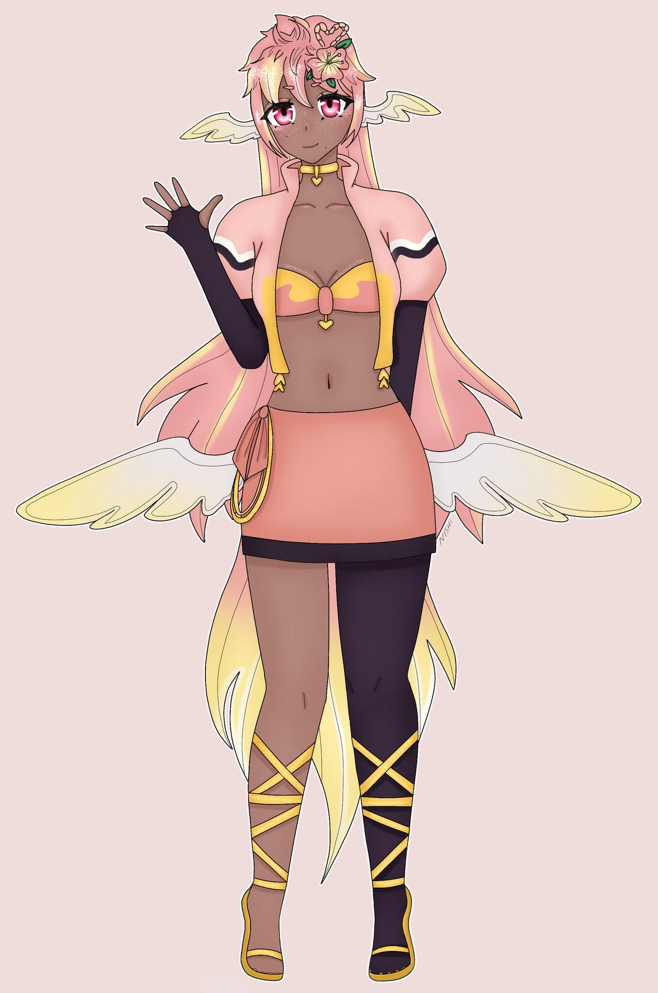 Pai is an angel from a country called Haven, she was born and raised in a small beach town by the border named Paradise. When a war broke out in her country, Pai’s town was one the first affected by the chaos and destruction caused by the neighboring country, Infinite. After losing part of her family and home she decided to join her people’s military with her sister and was bestowed a Stellar. A Stellar is a special symbol of power, which is marked as a star symbol on her hand; these Stellar’s also power special towers of protection that fell during the war called Scepters. She went on to contribute much to the cause but lost her remaining loved ones in the process. With the Scepter near her home being restored, she returned to her town and started the Cocostop as a way to bring hope and happiness; she now spends her time enjoying life to the fullest.Pai will never forget how terrifying her past was, she cherishes every moment of everyday life and faces each morning with a positive attitude. She is compassionate and kind, looking to bring a smile to each person’s face.