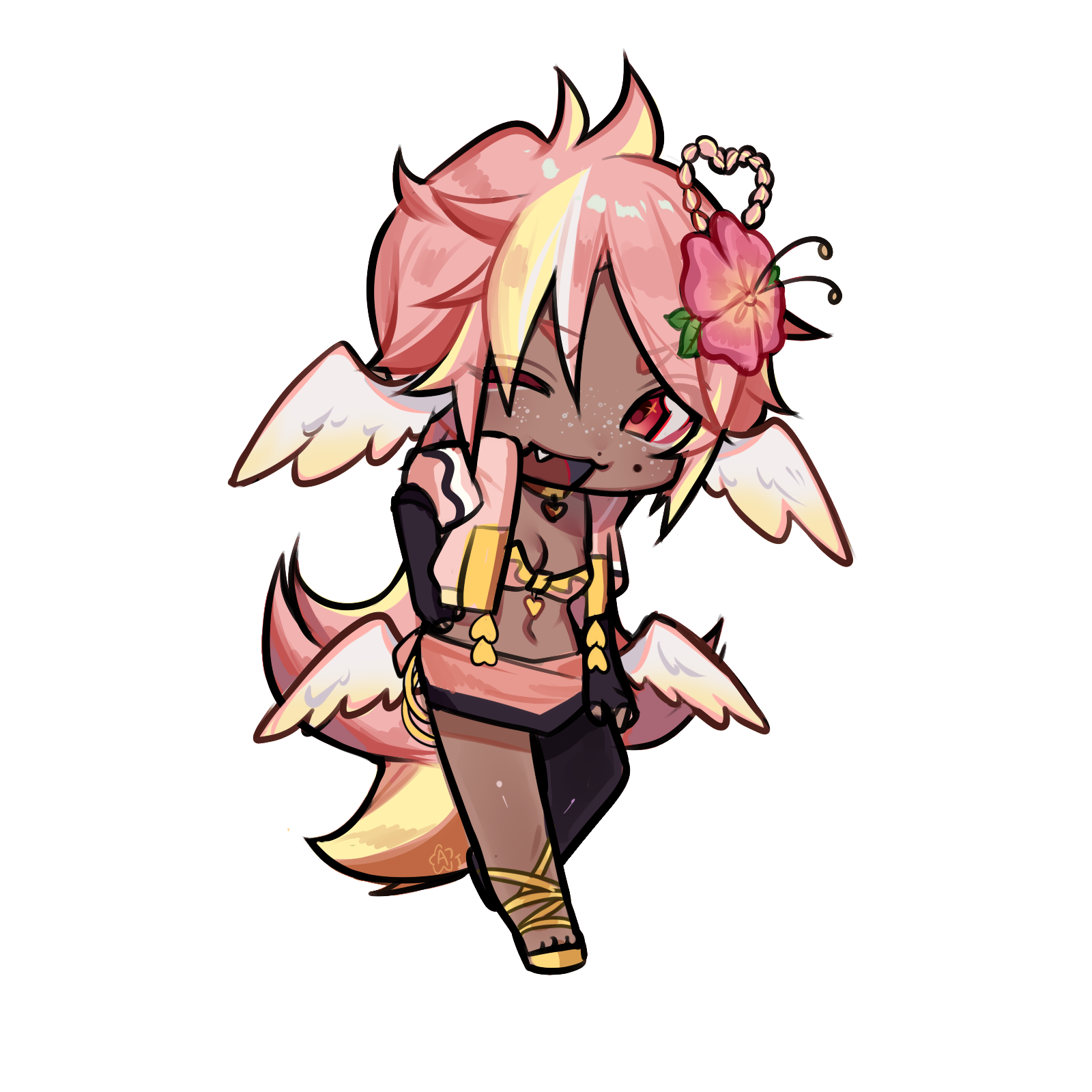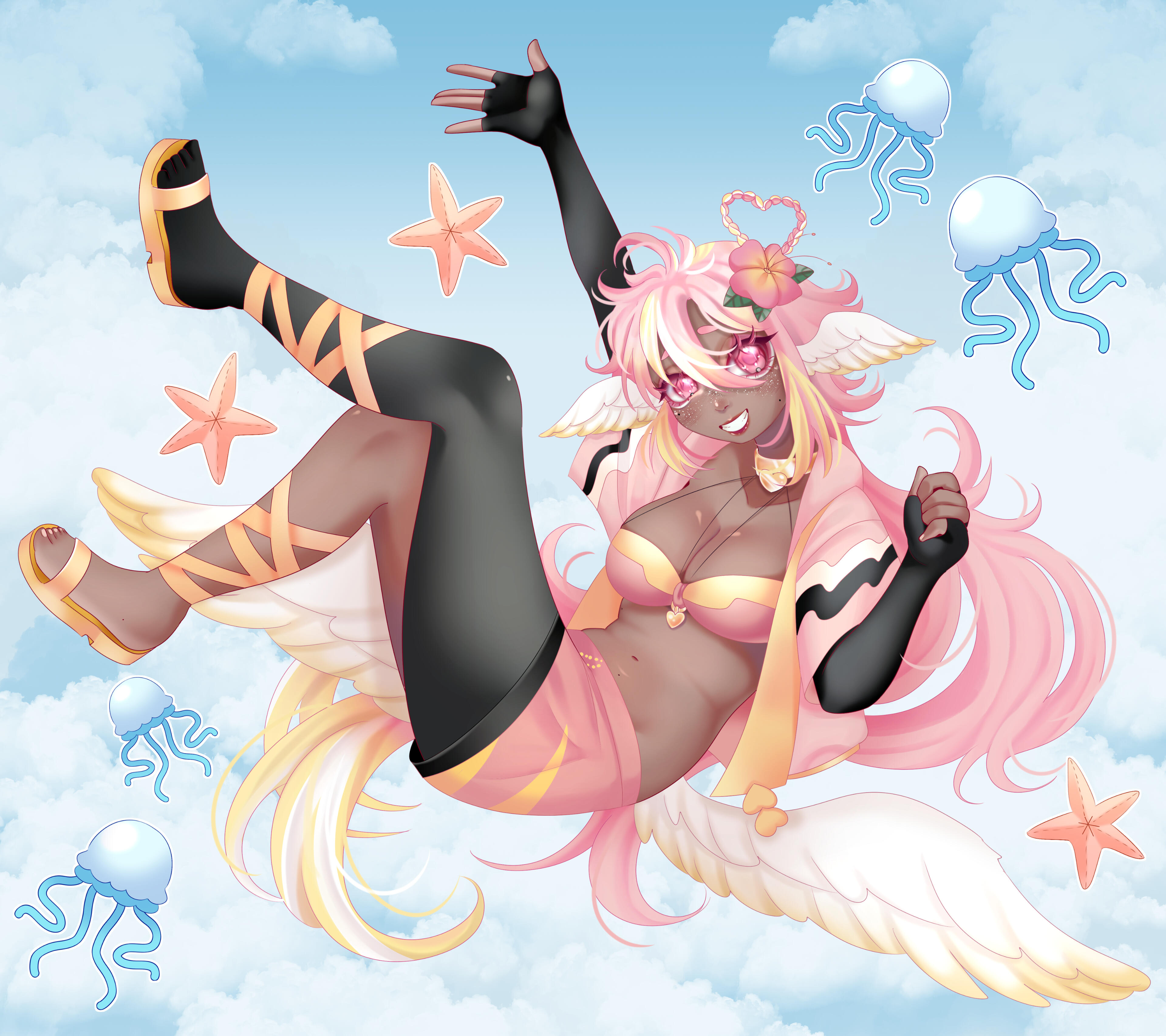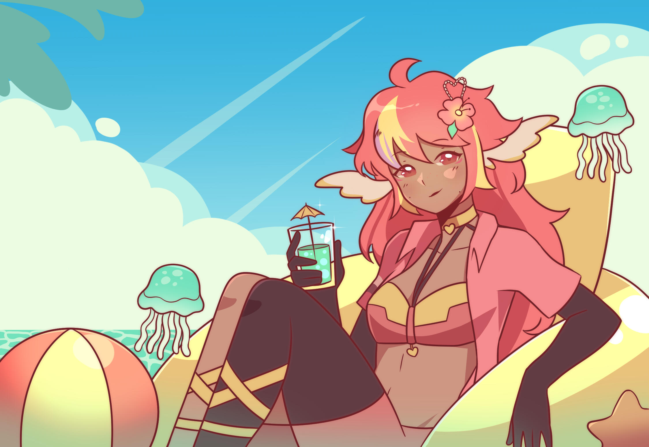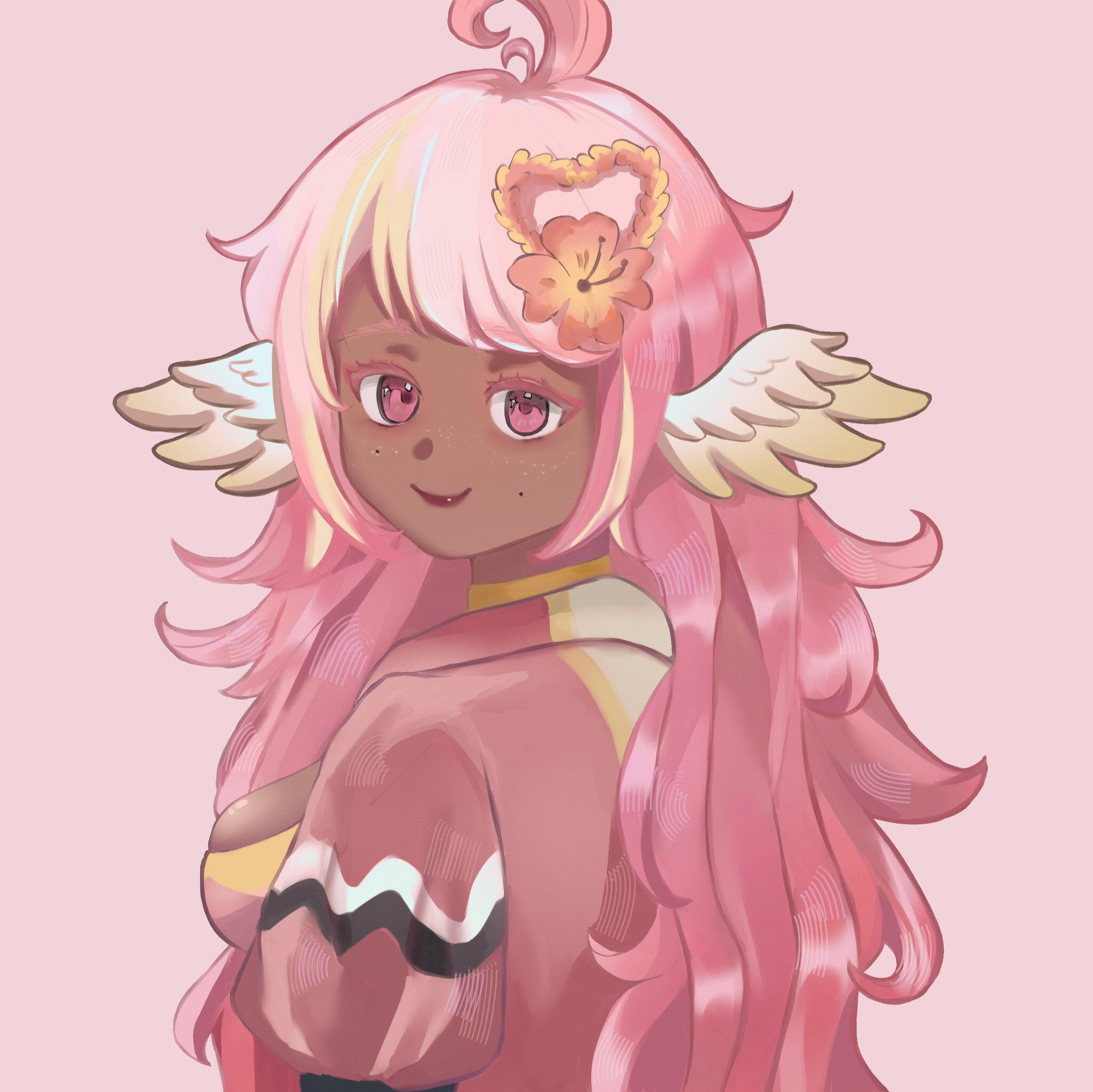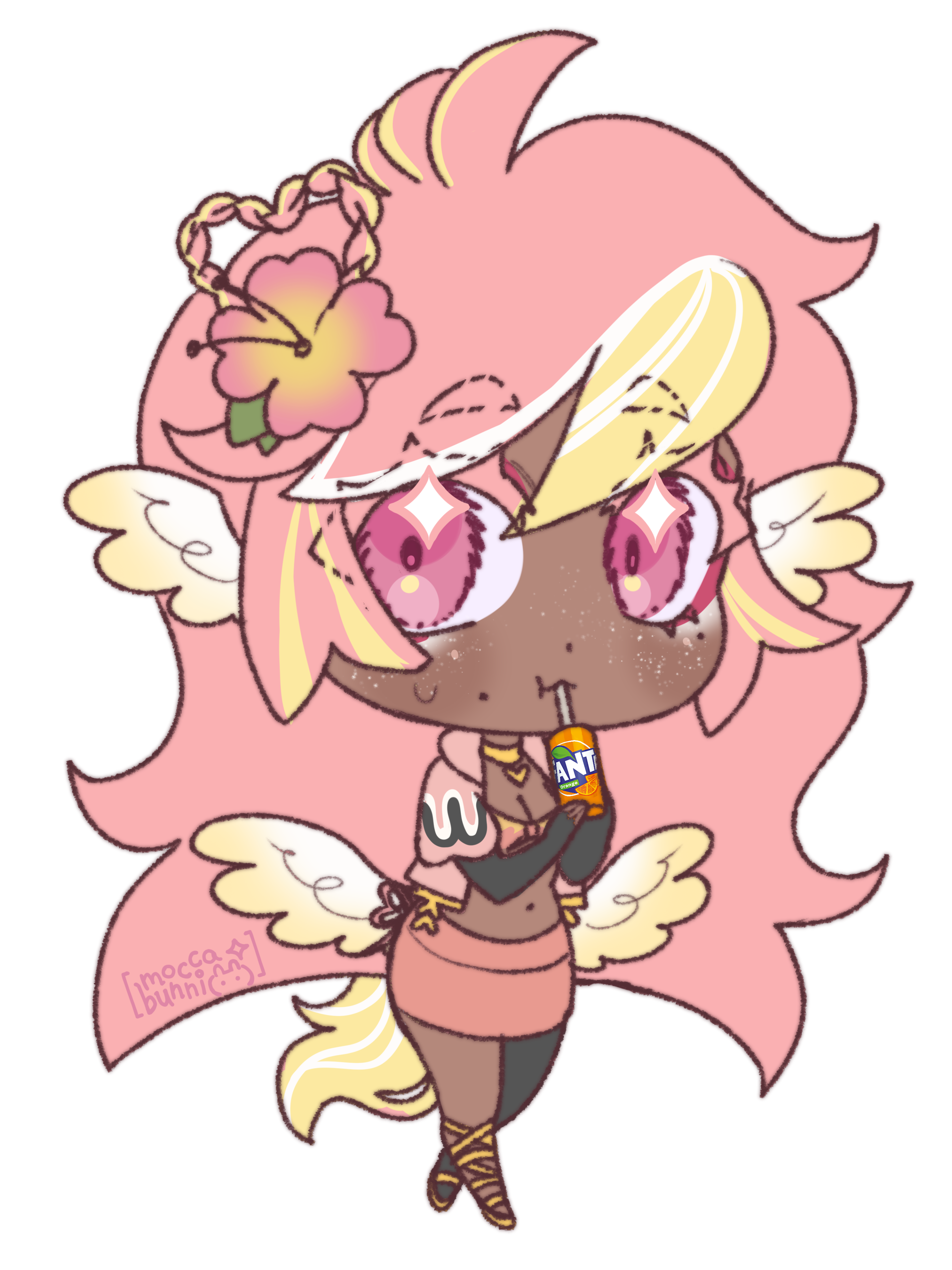 Pai is an angel from a country called Haven, she was born and raised in a small beach town by the border named Paradise. When a war broke out in her country, Pai’s town was one the first affected by the chaos and destruction caused by the neighboring country, Infinite. After losing part of her family and home she decided to join her people’s military with her sister and was bestowed a Stellar. A Stellar is a special symbol of power, which is marked as a star symbol on her hand; these Stellar’s also power special towers of protection that fell during the war called Scepters. She went on to contribute much to the cause but lost her remaining loved ones in the process. With the Scepter near her home being restored, she returned to her town and started the Cocostop as a way to bring hope and happiness; she now spends her time enjoying life to the fullest.Pai will never forget how terrifying her past was, she cherishes every moment of everyday life and faces each morning with a positive attitude. She is compassionate and kind, looking to bring a smile to each person’s face.