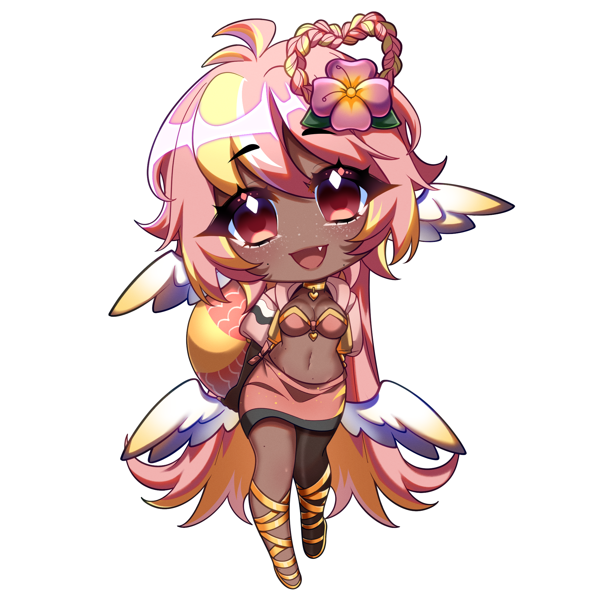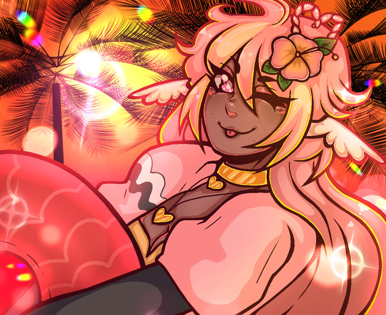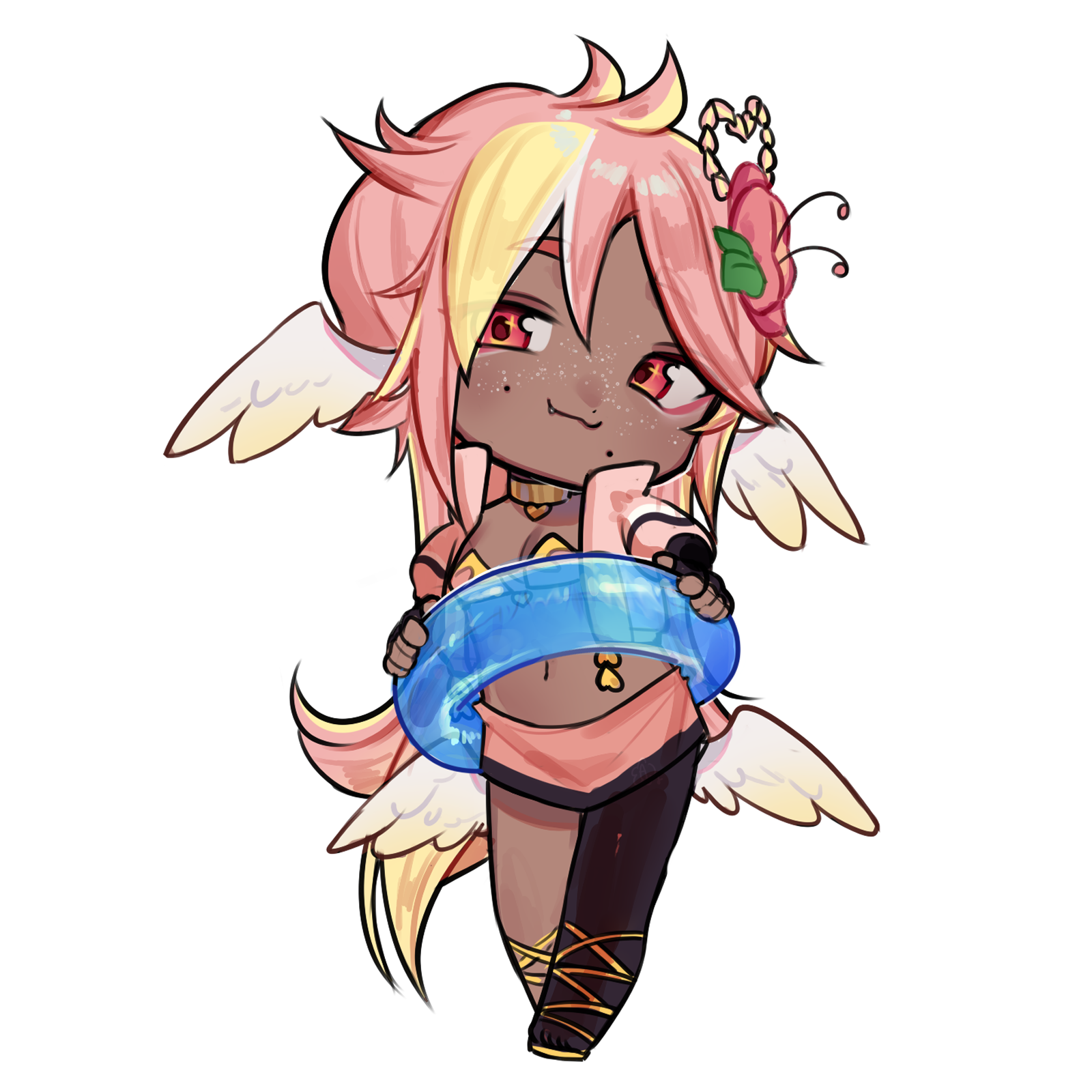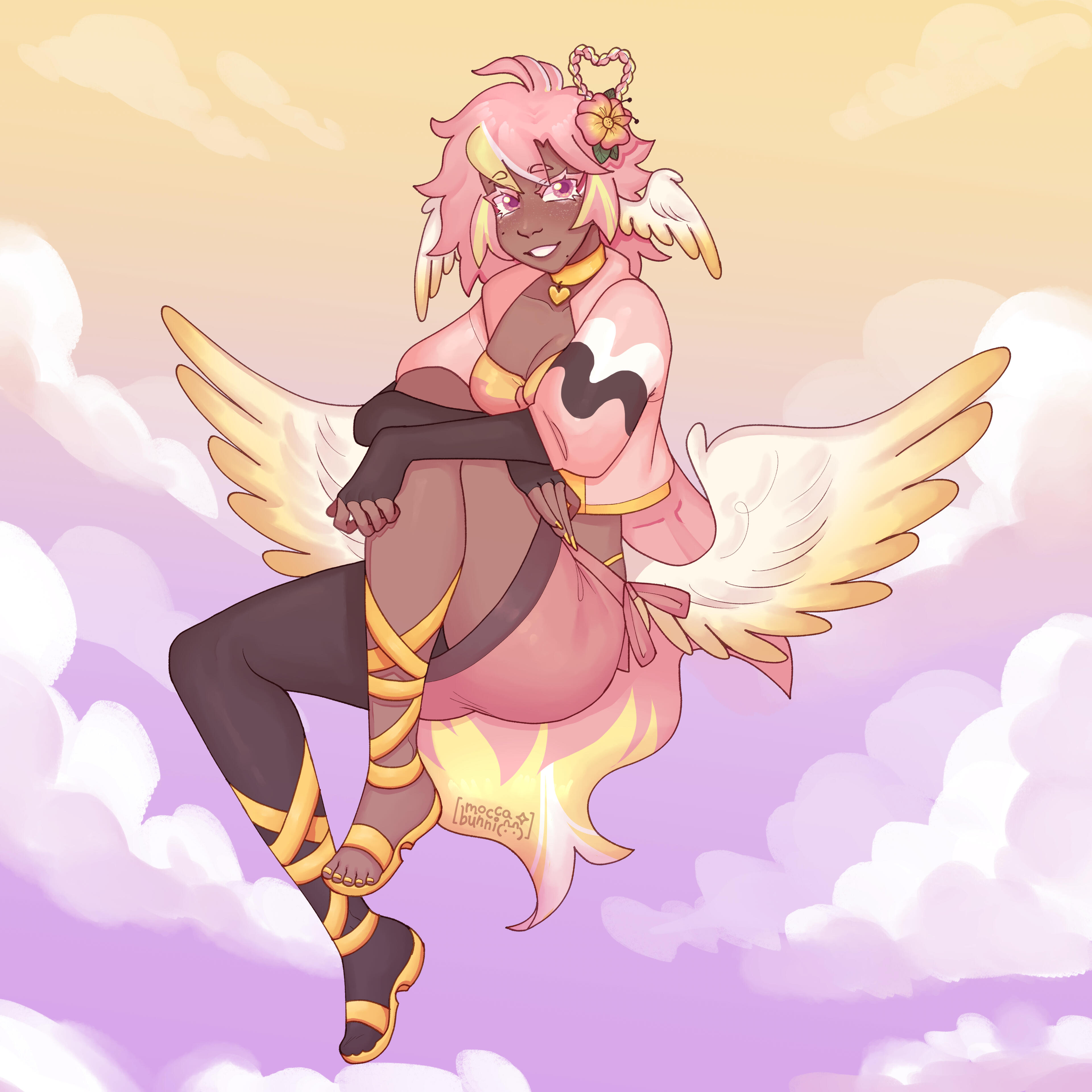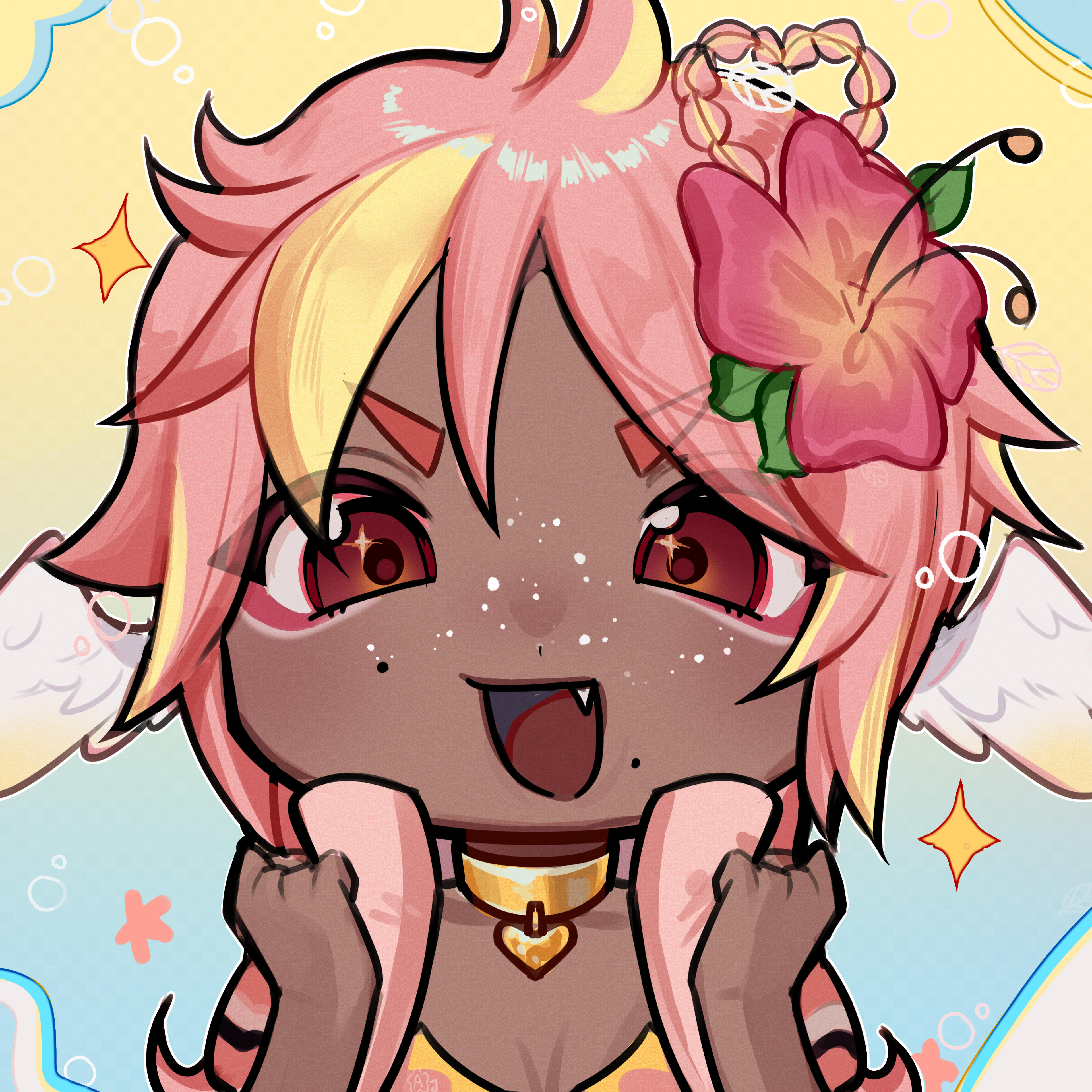 Pai is an angel from a country called Haven, she was born and raised in a small beach town by the border named Paradise. When a war broke out in her country, Pai’s town was one the first affected by the chaos and destruction caused by the neighboring country, Infinite. After losing part of her family and home she decided to join her people’s military with her sister and was bestowed a Stellar. A Stellar is a special symbol of power, which is marked as a star symbol on her hand; these Stellar’s also power special towers of protection that fell during the war called Scepters. She went on to contribute much to the cause but lost her remaining loved ones in the process. With the Scepter near her home being restored, she returned to her town and started the Cocostop as a way to bring hope and happiness; she now spends her time enjoying life to the fullest.Pai will never forget how terrifying her past was, she cherishes every moment of everyday life and faces each morning with a positive attitude. She is compassionate and kind, looking to bring a smile to each person’s face.