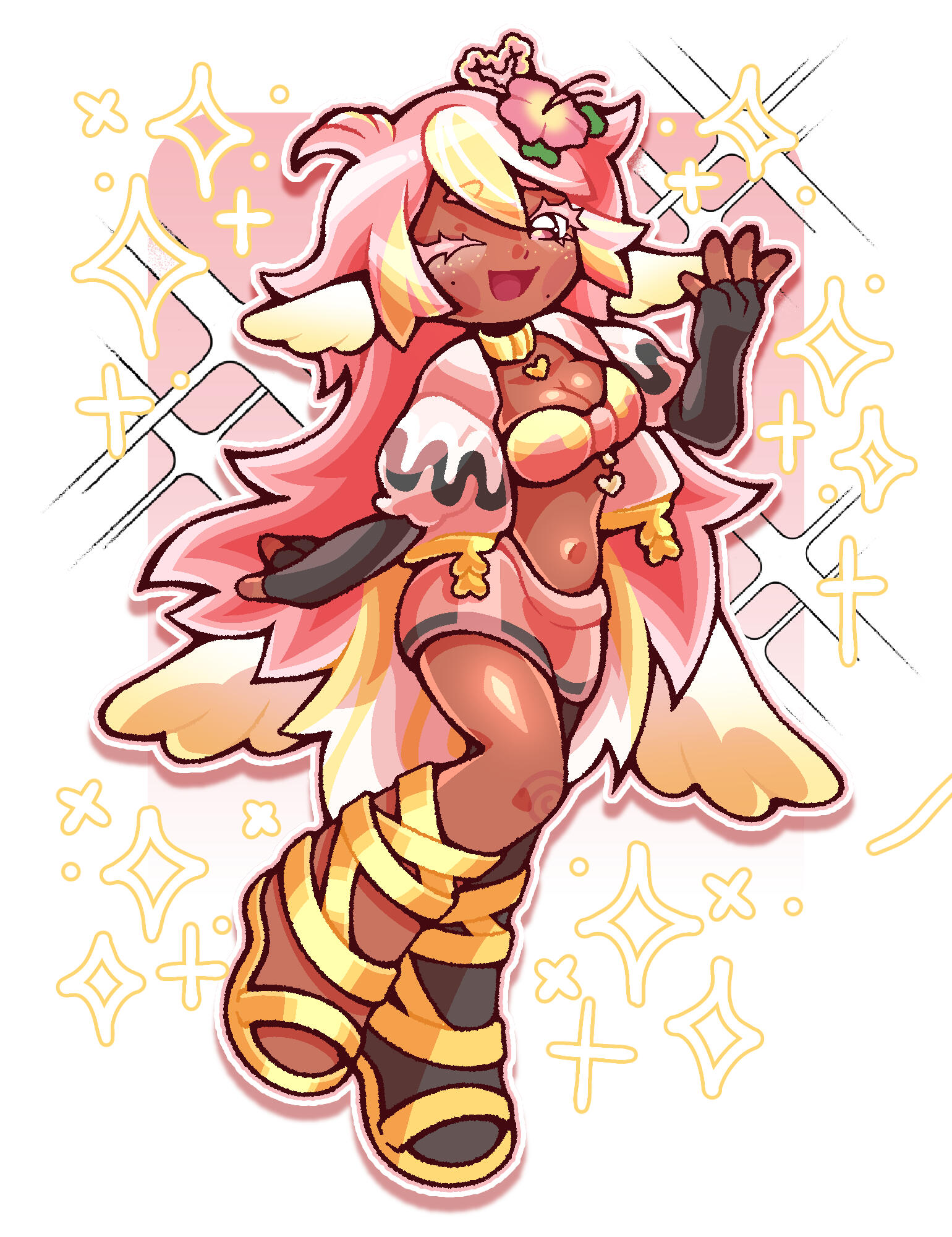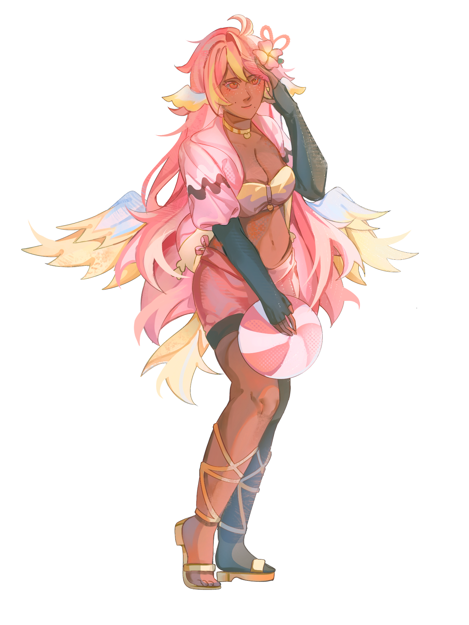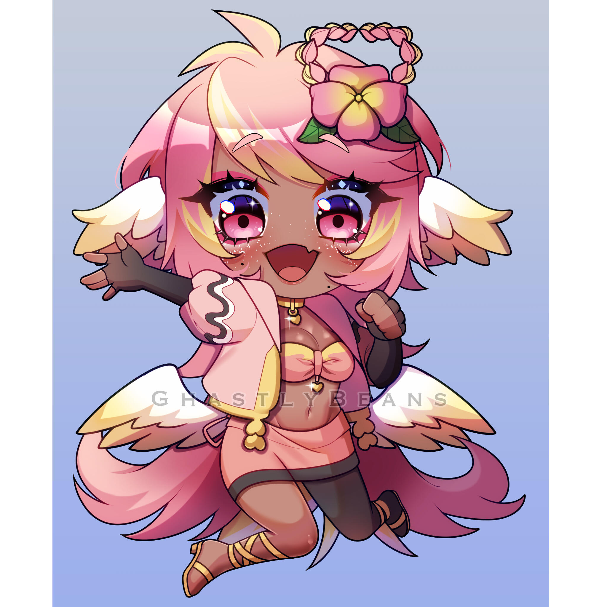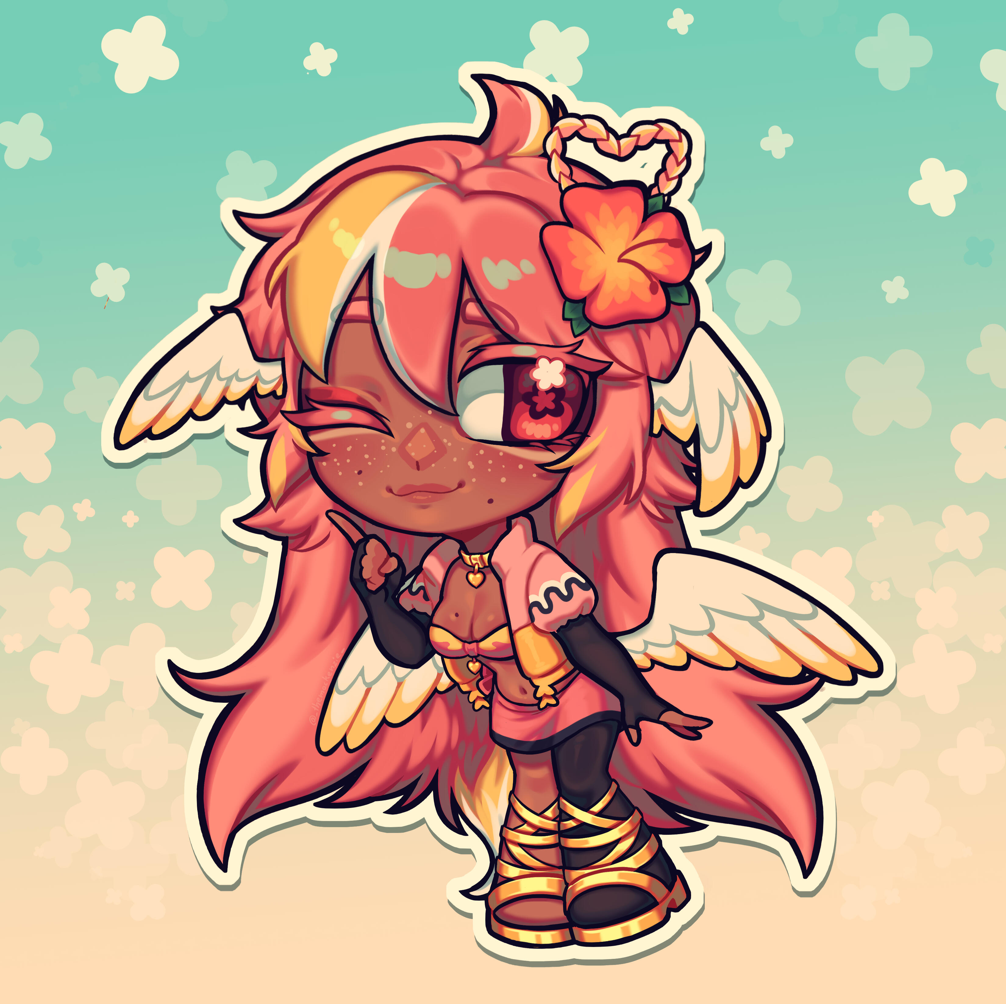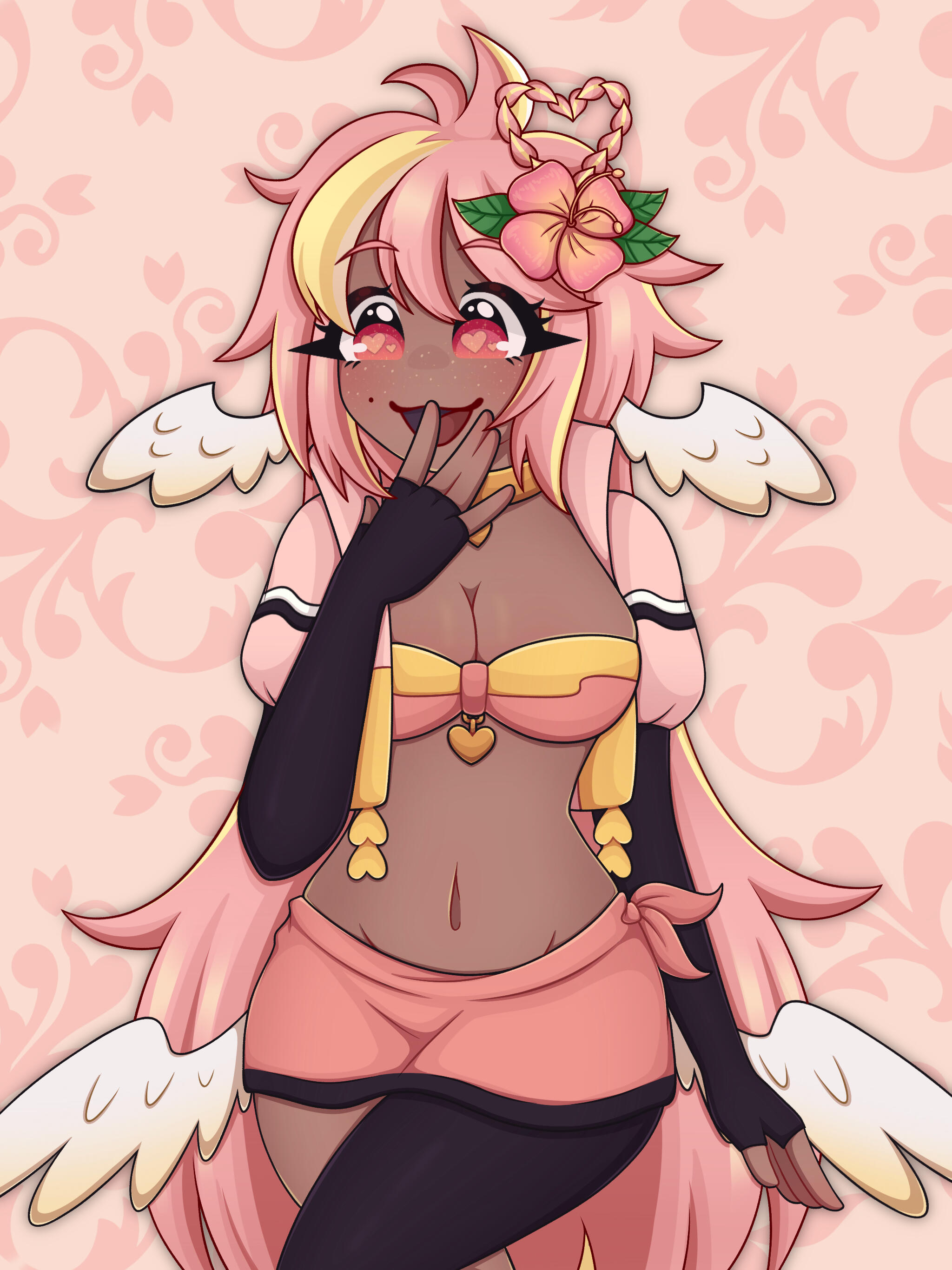 Pai is an angel from a country called Haven, she was born and raised in a small beach town by the border named Paradise. When a war broke out in her country, Pai’s town was one the first affected by the chaos and destruction caused by the neighboring country, Infinite. After losing part of her family and home she decided to join her people’s military with her sister and was bestowed a Stellar. A Stellar is a special symbol of power, which is marked as a star symbol on her hand; these Stellar’s also power special towers of protection that fell during the war called Scepters. She went on to contribute much to the cause but lost her remaining loved ones in the process. With the Scepter near her home being restored, she returned to her town and started the Cocostop as a way to bring hope and happiness; she now spends her time enjoying life to the fullest.Pai will never forget how terrifying her past was, she cherishes every moment of everyday life and faces each morning with a positive attitude. She is compassionate and kind, looking to bring a smile to each person’s face.