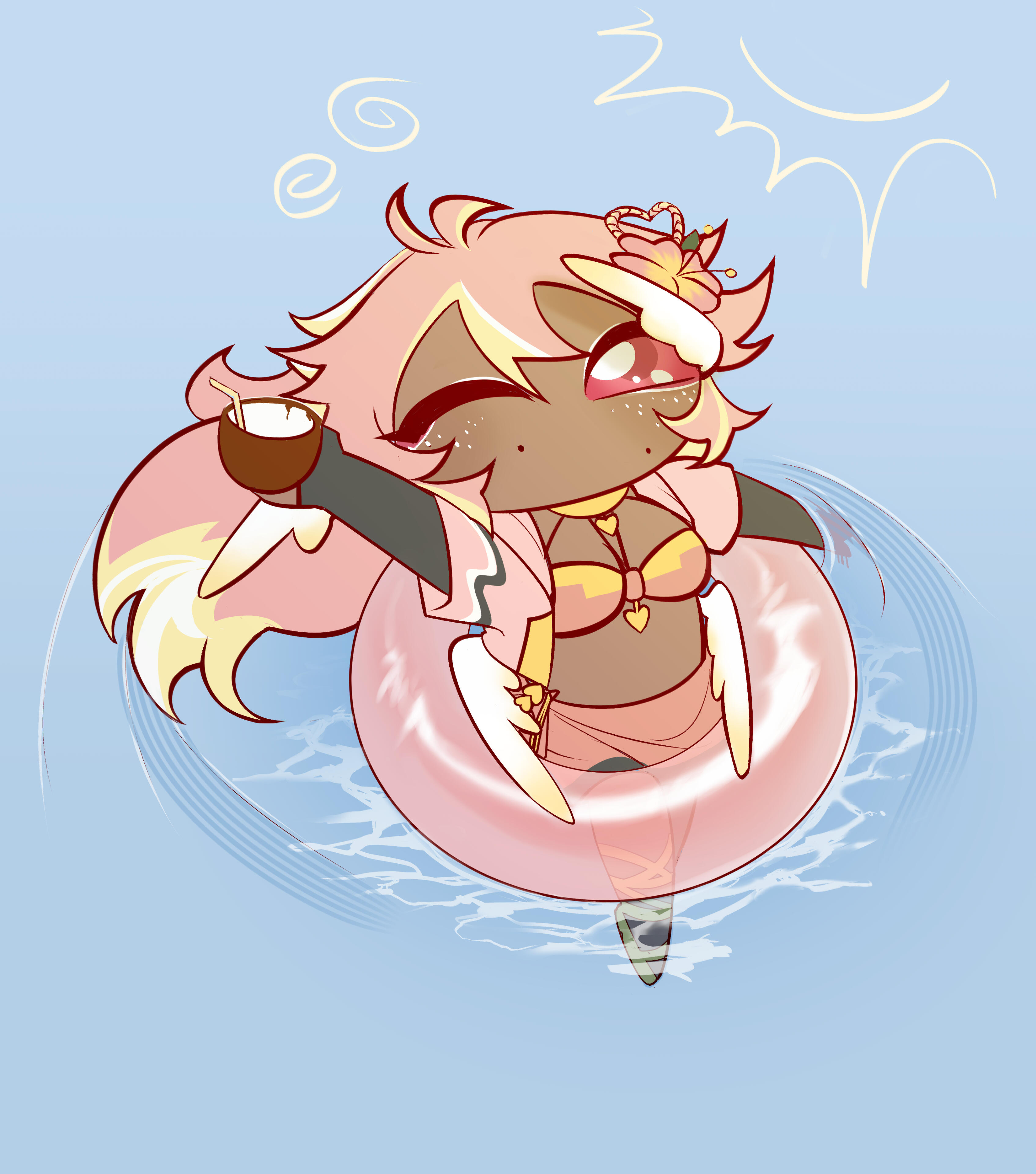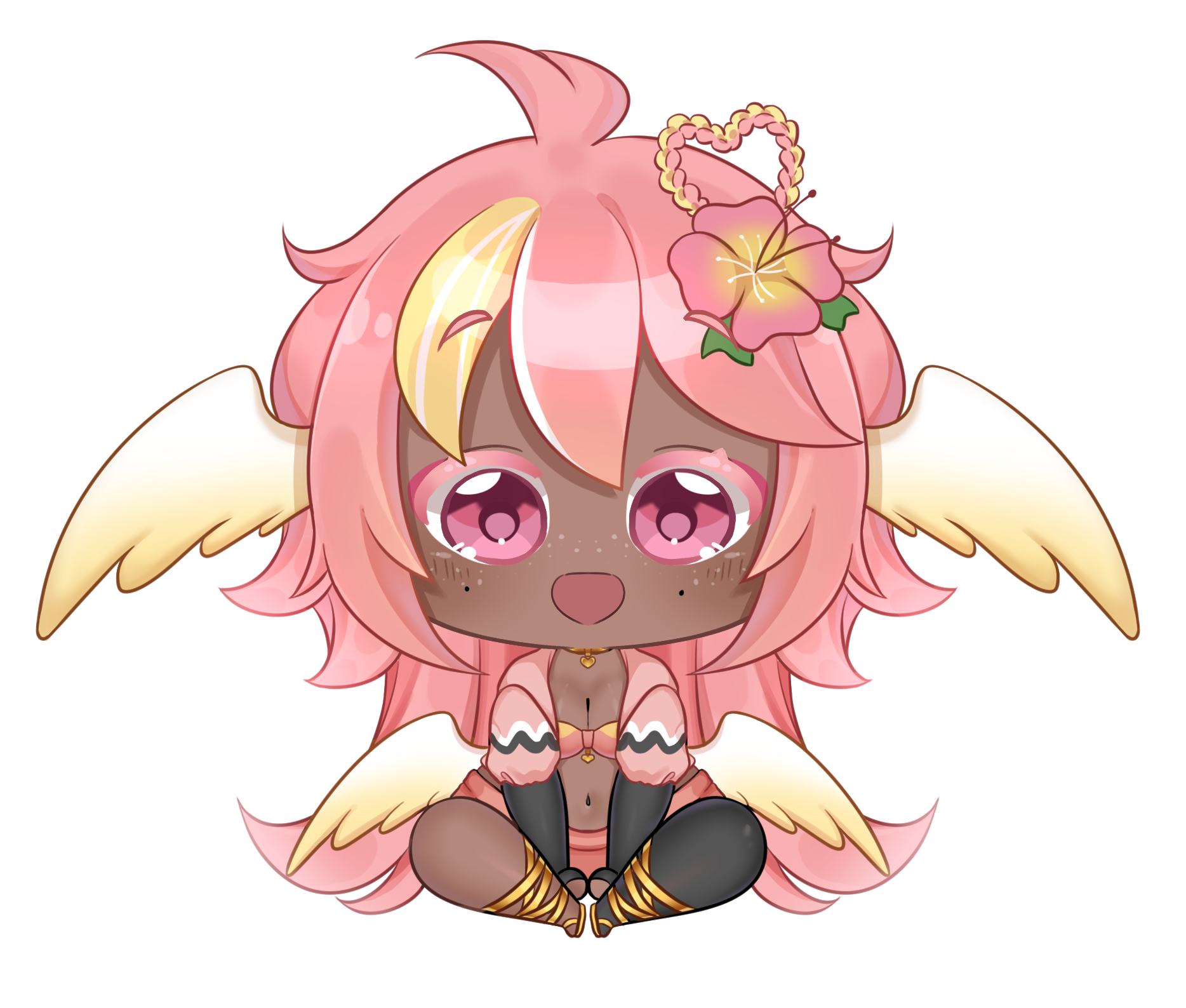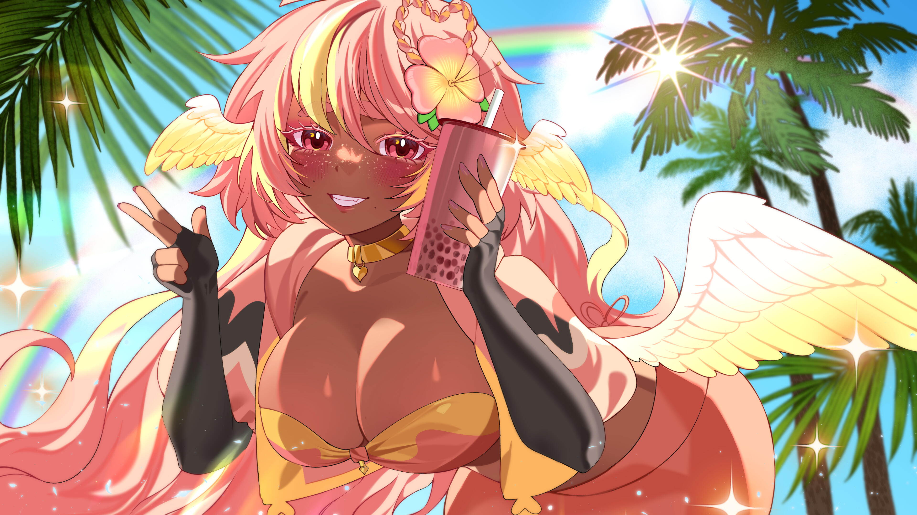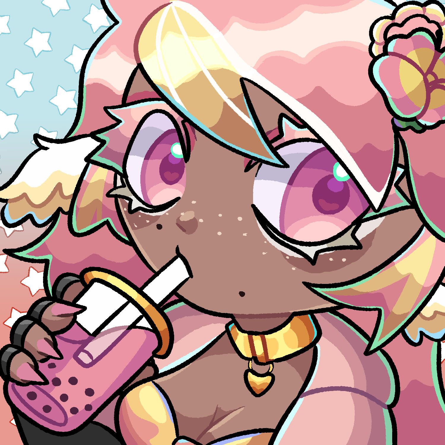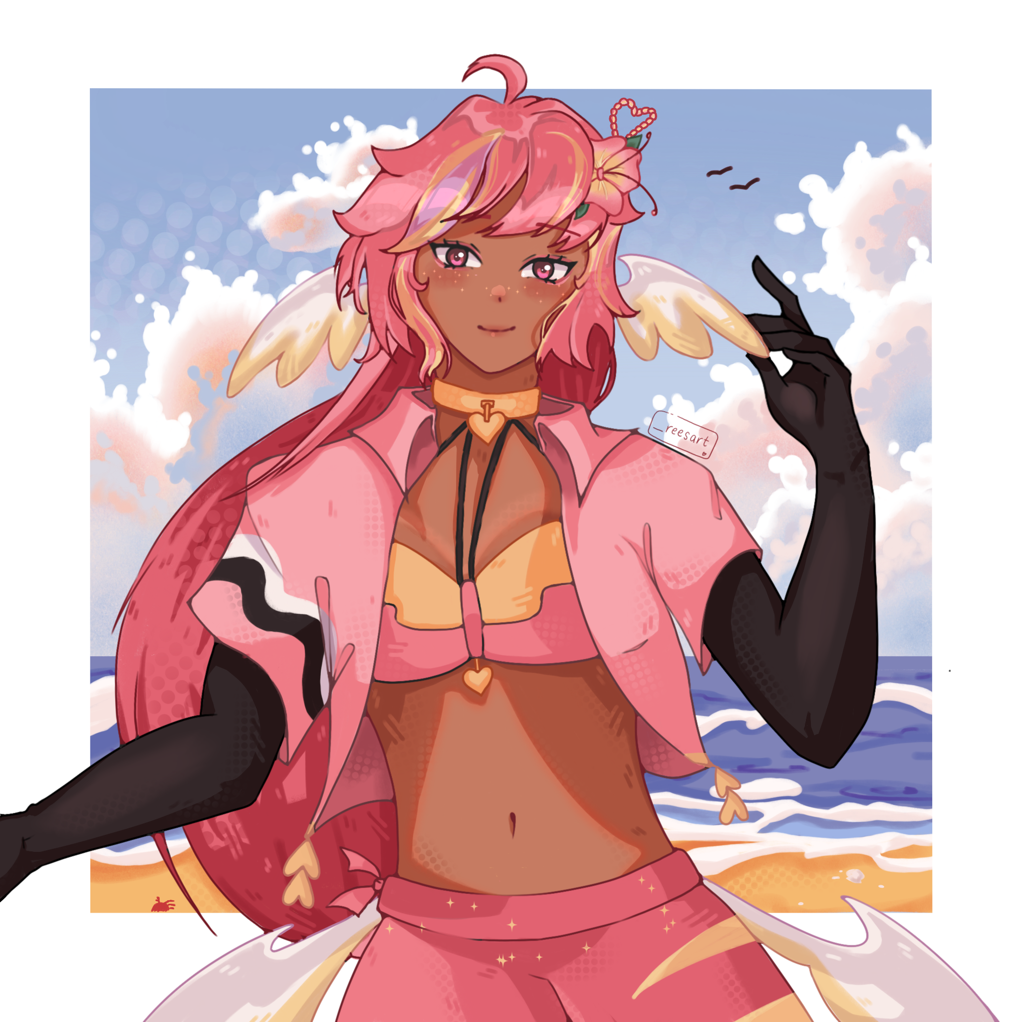 Pai is an angel from a country called Haven, she was born and raised in a small beach town by the border named Paradise. When a war broke out in her country, Pai’s town was one the first affected by the chaos and destruction caused by the neighboring country, Infinite. After losing part of her family and home she decided to join her people’s military with her sister and was bestowed a Stellar. A Stellar is a special symbol of power, which is marked as a star symbol on her hand; these Stellar’s also power special towers of protection that fell during the war called Scepters. She went on to contribute much to the cause but lost her remaining loved ones in the process. With the Scepter near her home being restored, she returned to her town and started the Cocostop as a way to bring hope and happiness; she now spends her time enjoying life to the fullest.Pai will never forget how terrifying her past was, she cherishes every moment of everyday life and faces each morning with a positive attitude. She is compassionate and kind, looking to bring a smile to each person’s face.