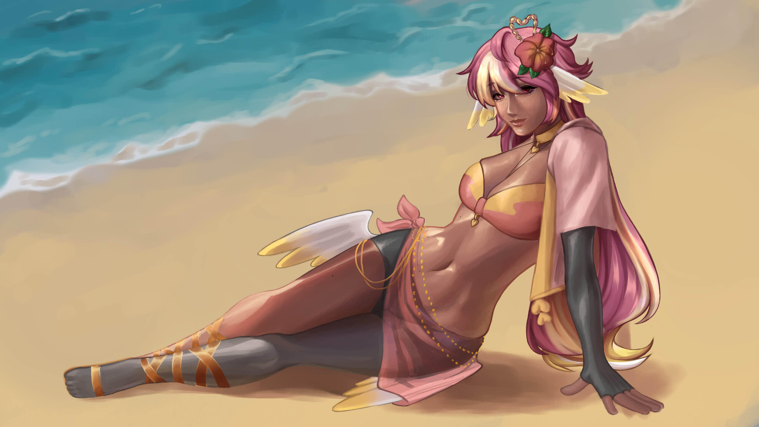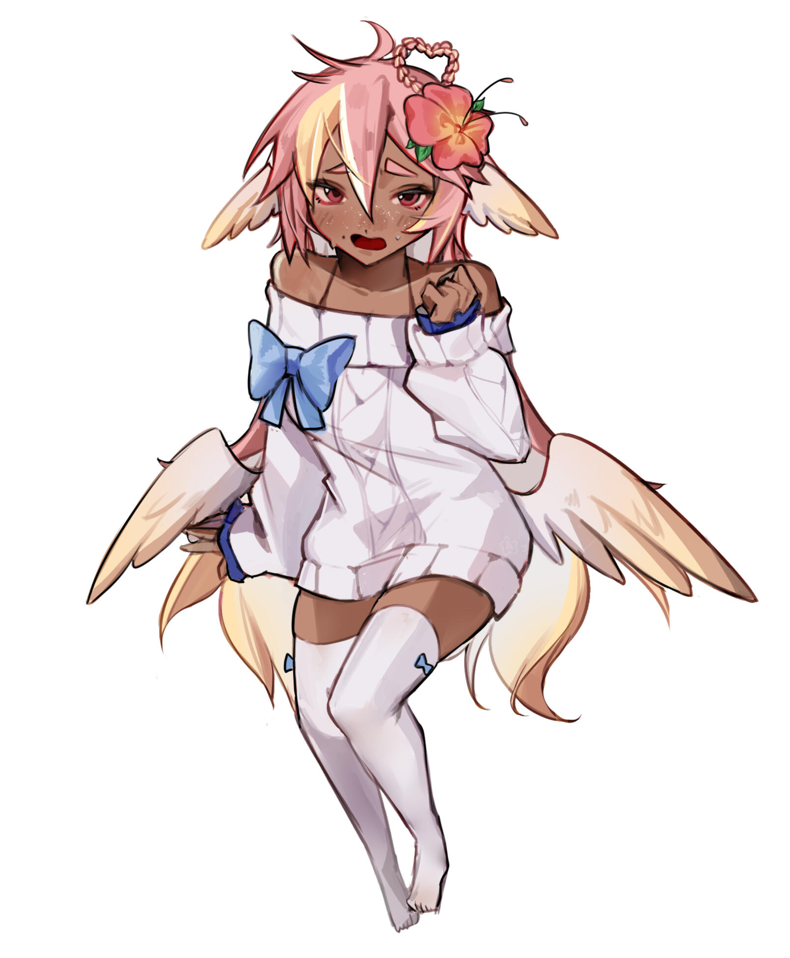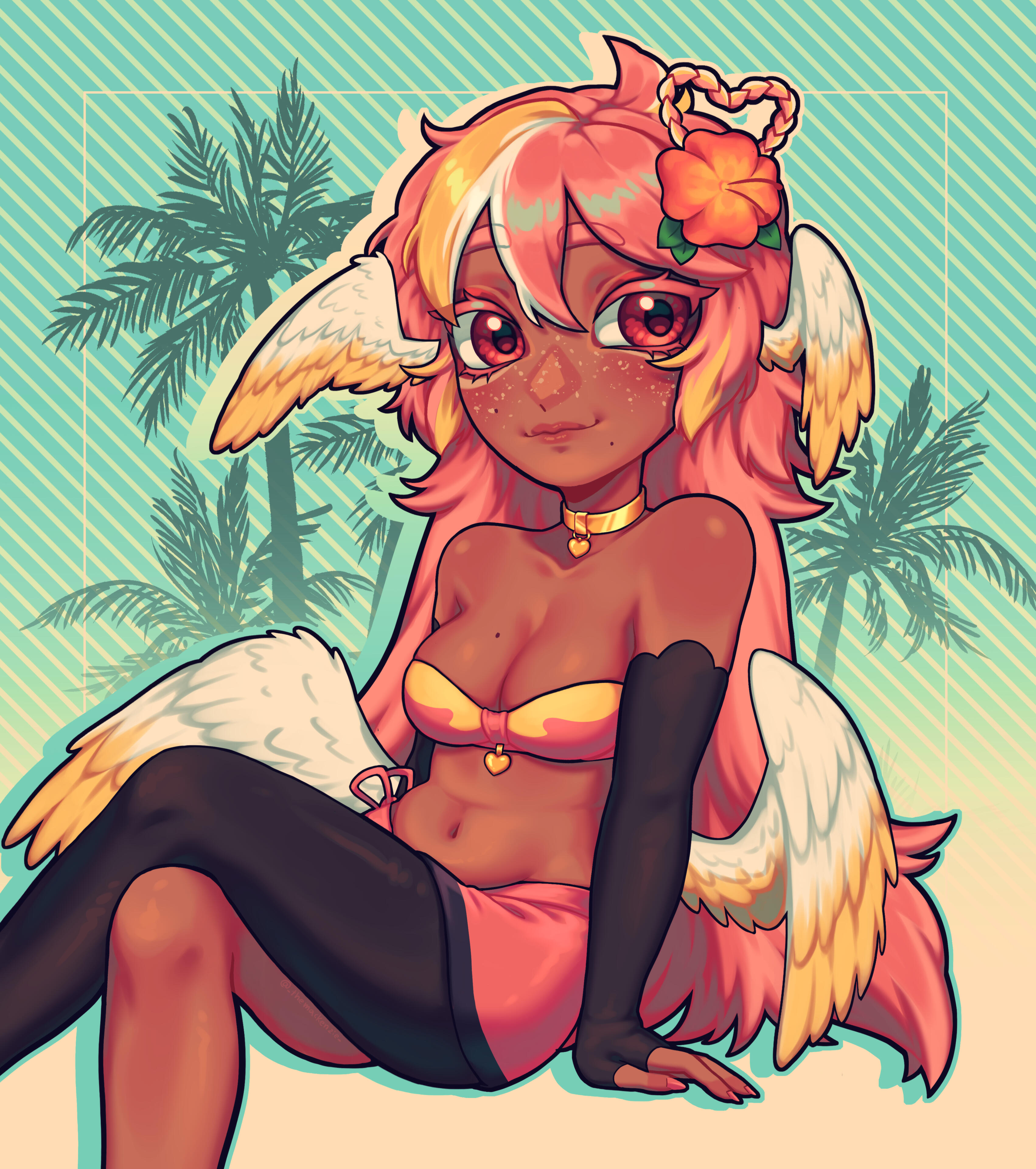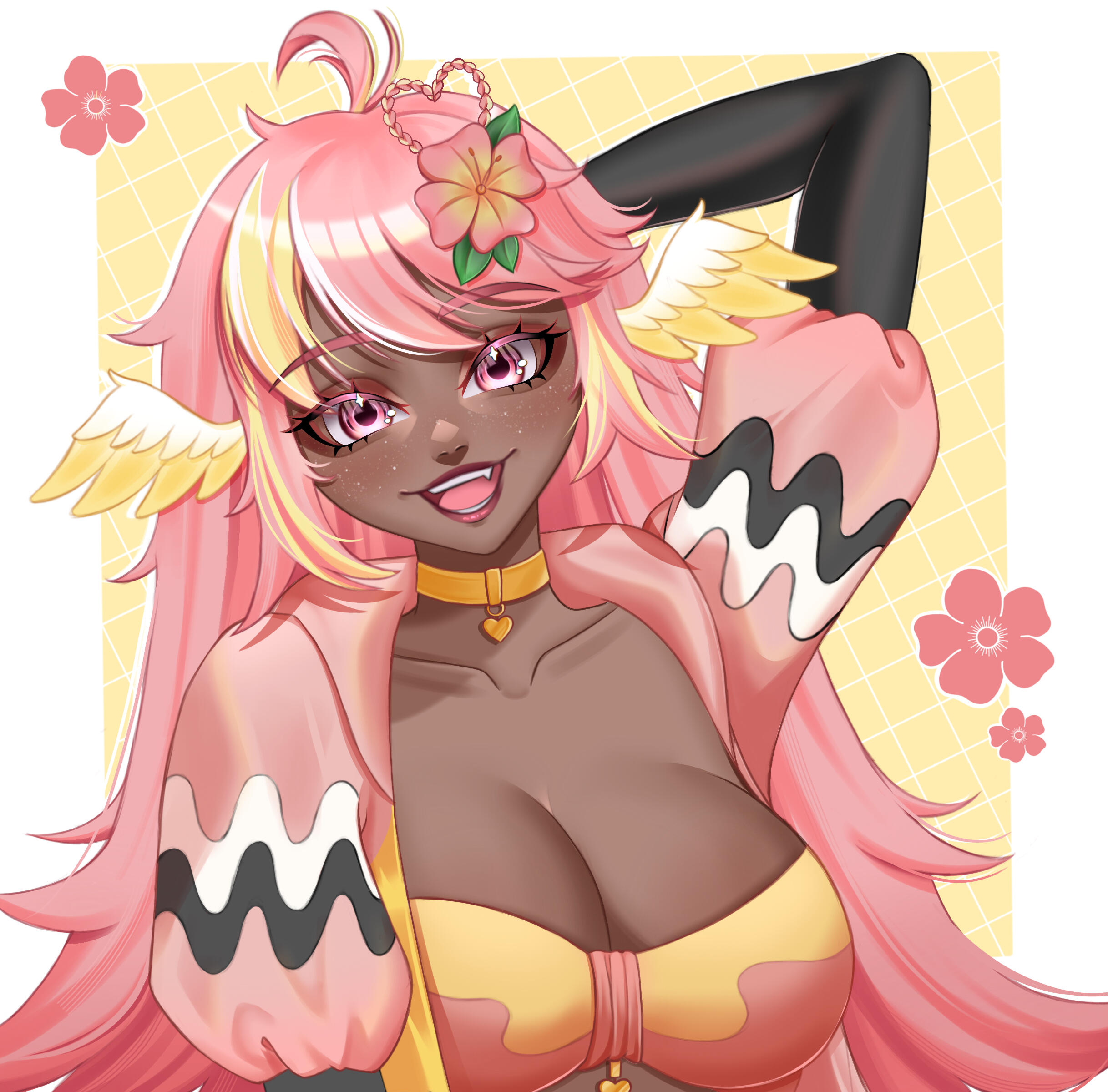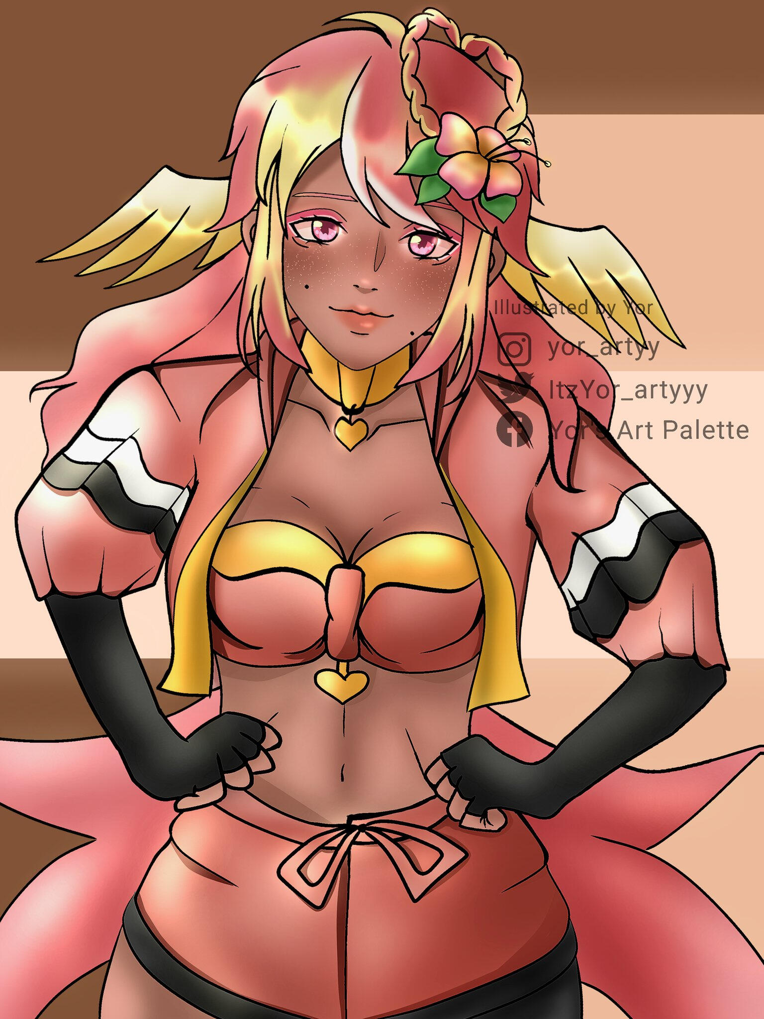 Pai is an angel from a country called Haven, she was born and raised in a small beach town by the border named Paradise. When a war broke out in her country, Pai’s town was one the first affected by the chaos and destruction caused by the neighboring country, Infinite. After losing part of her family and home she decided to join her people’s military with her sister and was bestowed a Stellar. A Stellar is a special symbol of power, which is marked as a star symbol on her hand; these Stellar’s also power special towers of protection that fell during the war called Scepters. She went on to contribute much to the cause but lost her remaining loved ones in the process. With the Scepter near her home being restored, she returned to her town and started the Cocostop as a way to bring hope and happiness; she now spends her time enjoying life to the fullest.Pai will never forget how terrifying her past was, she cherishes every moment of everyday life and faces each morning with a positive attitude. She is compassionate and kind, looking to bring a smile to each person’s face.